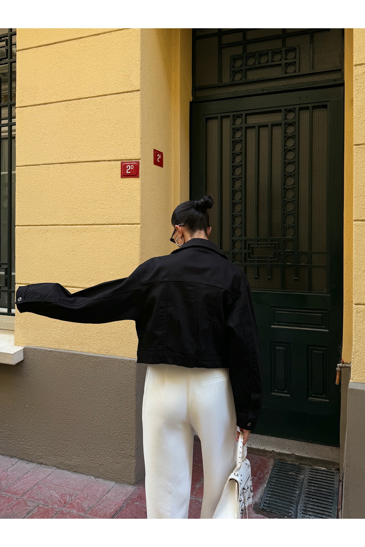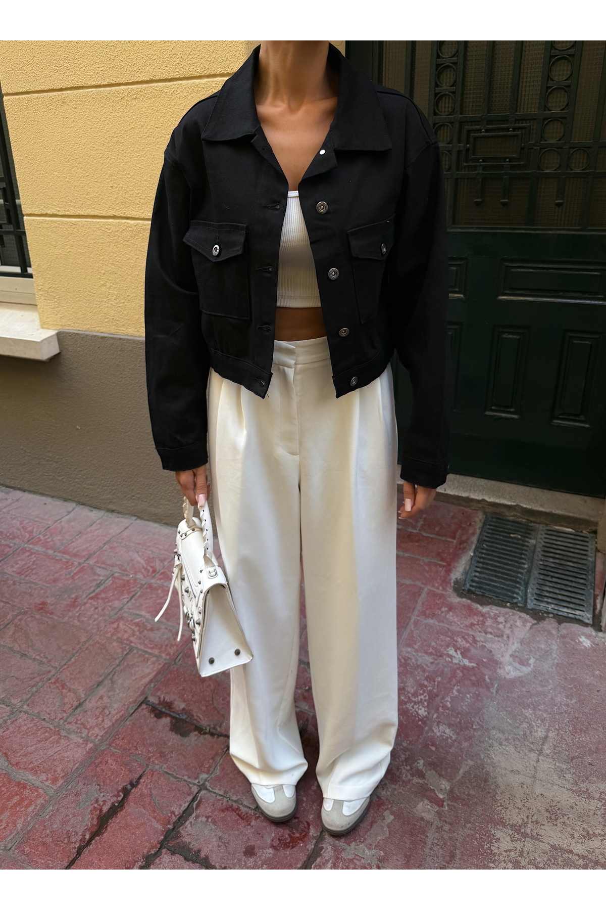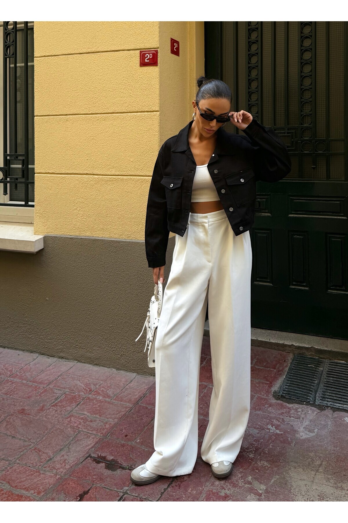 Kadın Göğüs Cepli Arka Pileli Denim Ceket Kadın Göğüs Cepli Arka Pileli Denim Ceket Laluna1117DC L