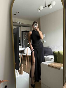 Balıkçı Yaka Yırtmaçlı Uzun Valentina Elbise Siyah Balıkçı Yaka Yırtmaçlı Uzun Valentina Elbise Siyah HLFW26-0005 L