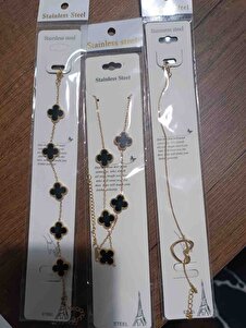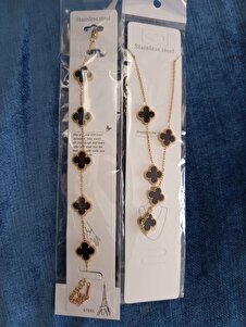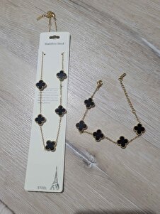 Çelik Siyah Yonca Kolye,Bileklik Set Çelik Siyah Yonca Kolye,Bileklik Set 4000 Standart