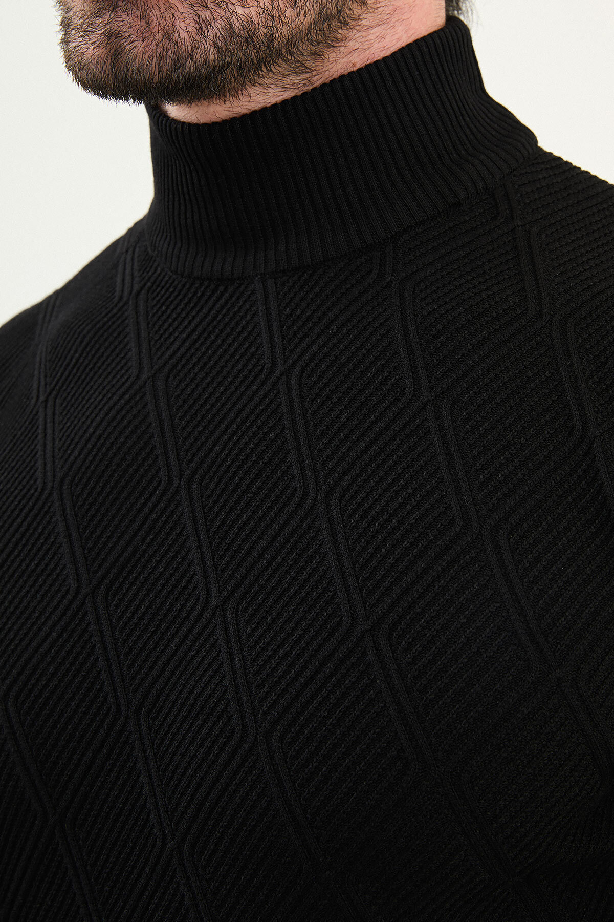 Desenli Slim Fit Yarım Balıkçı Yaka Erkek Triko Kazak Siyah - 11547.25K Desenli Slim Fit Yarım Balıkçı Yaka Erkek Triko Kazak Siyah - 11547.25K 2XL