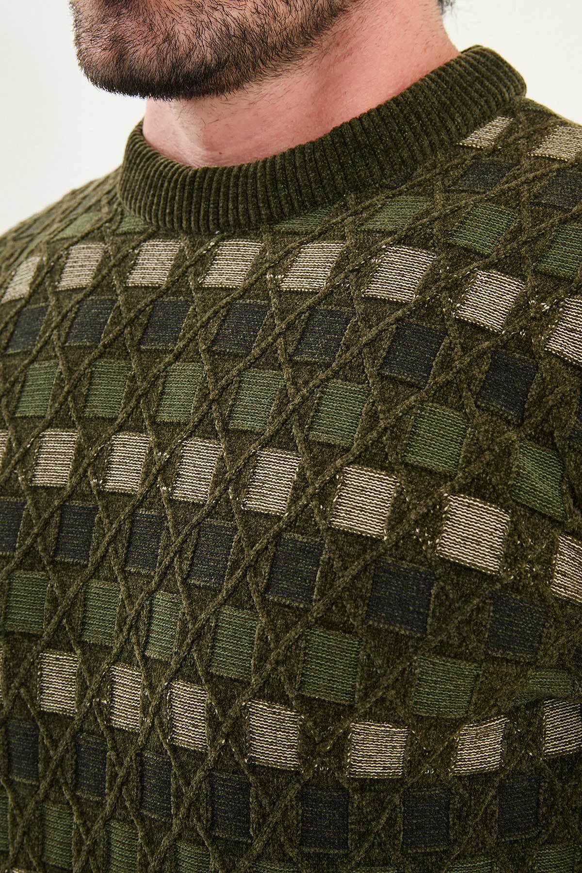 Desenli Slim Fit Bisiklet Yaka Şönil Kumaş Erkek Triko Kazak Haki - 11556.25K Desenli Slim Fit Bisiklet Yaka Şönil Kumaş Erkek Triko Kazak Haki - 11556.25K 2XL