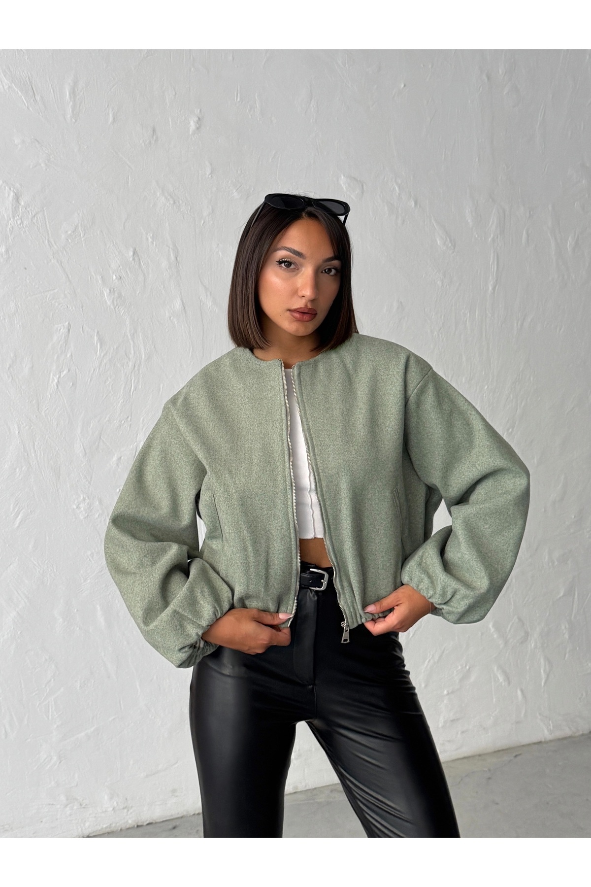Kadın Çift Cepli Kaşe Kumaş Puff Kol Bomber Ceket Kadın Çift Cepli Kaşe Kumaş Puff Kol Bomber Ceket Gmyl-bombrkdn L