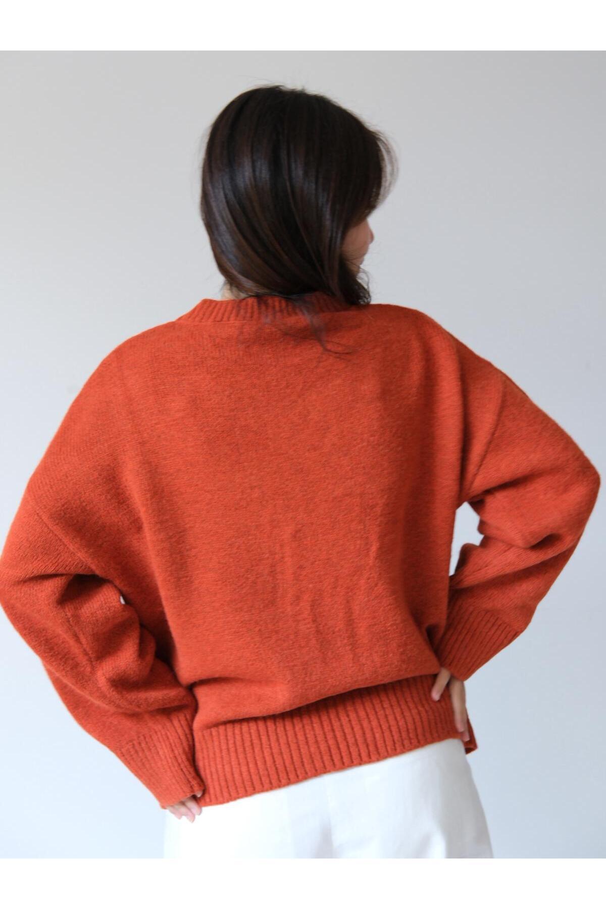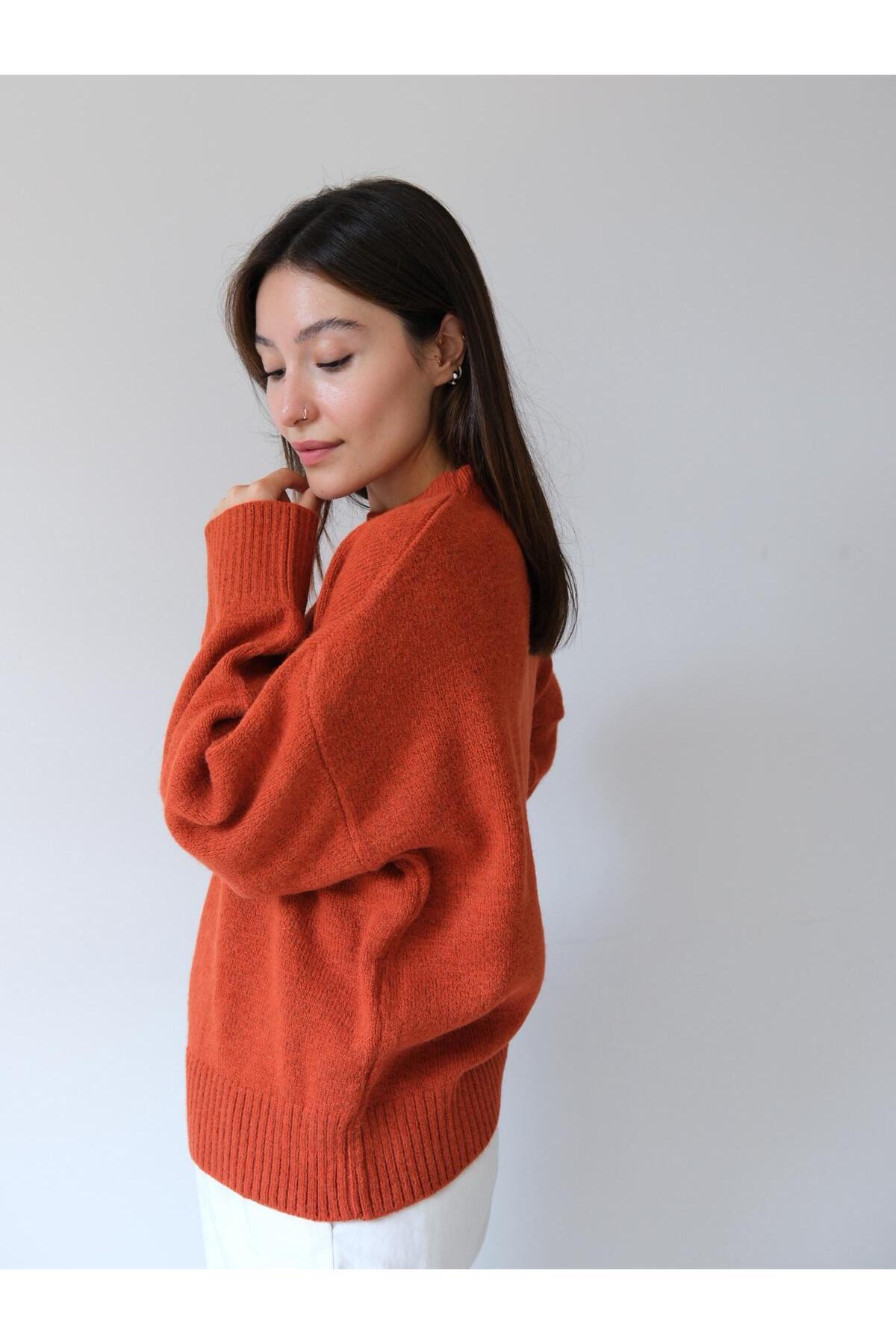 Una Fiaba Kiremit Rengi Düz Kadın Bisiklet Yaka Oversize Yumuşak Dokulu Triko Kazak Una Fiaba Kiremit Rengi Düz Kadın Bisiklet Yaka Oversize Yumuşak Dokulu Triko Kazak 251972 L