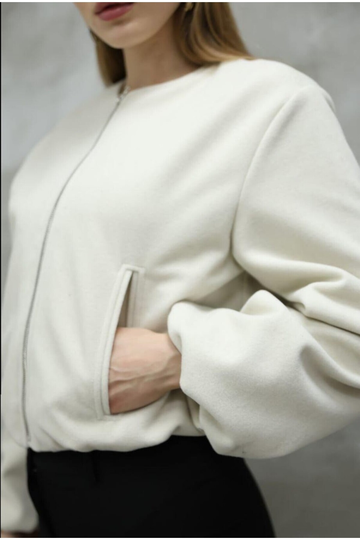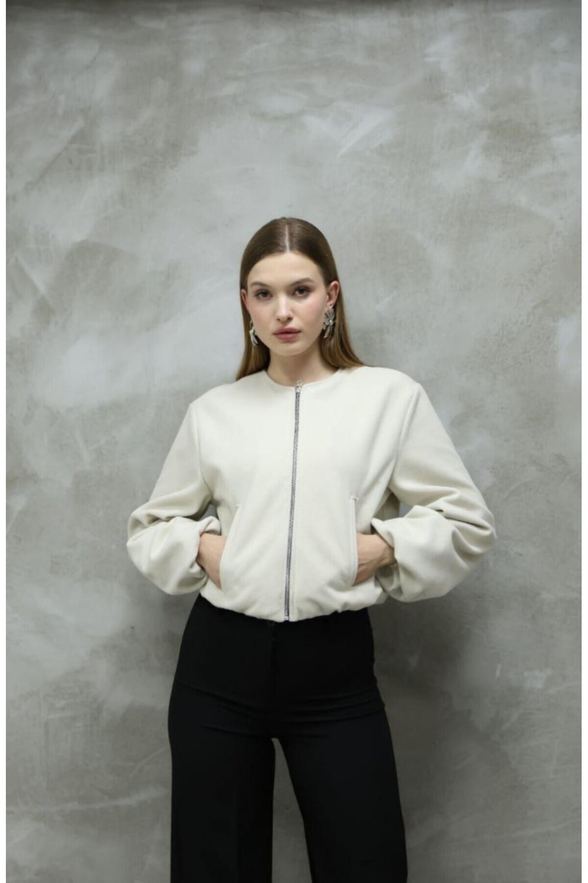 Kadın Çift Cepli Kaşe Kumaş Puff Kol Bomber Ceket Kadın Çift Cepli Kaşe Kumaş Puff Kol Bomber Ceket Otaku-kdnbmbr L