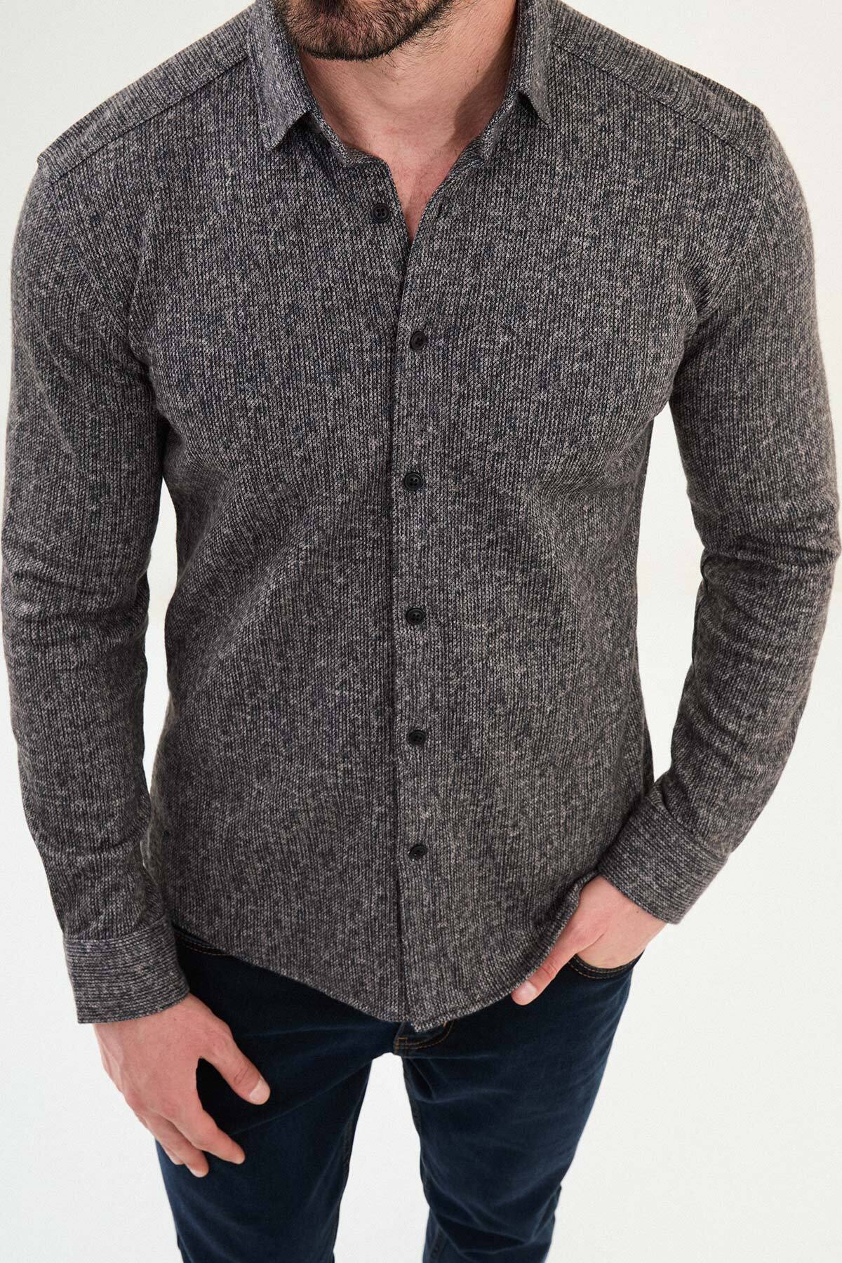 Desenli Slim Fit Yün Erkek Gömlek Bej - 27087.25K Desenli Slim Fit Yün Erkek Gömlek Bej - 27087.25K 2XL