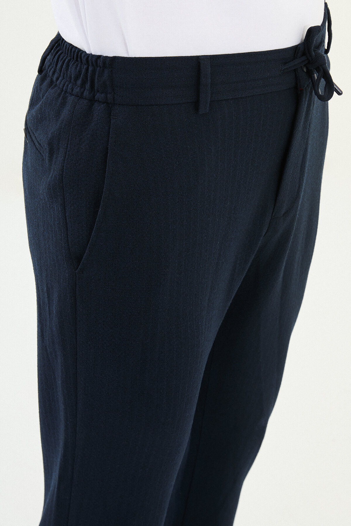 Çizgili Super Slim Fit Beli Lastikli İpli Pamuk Erkek Pantolon Lacivert - 38324.25K Çizgili Super Slim Fit Beli Lastikli İpli Pamuk Erkek Pantolon Lacivert - 38324.25K 38