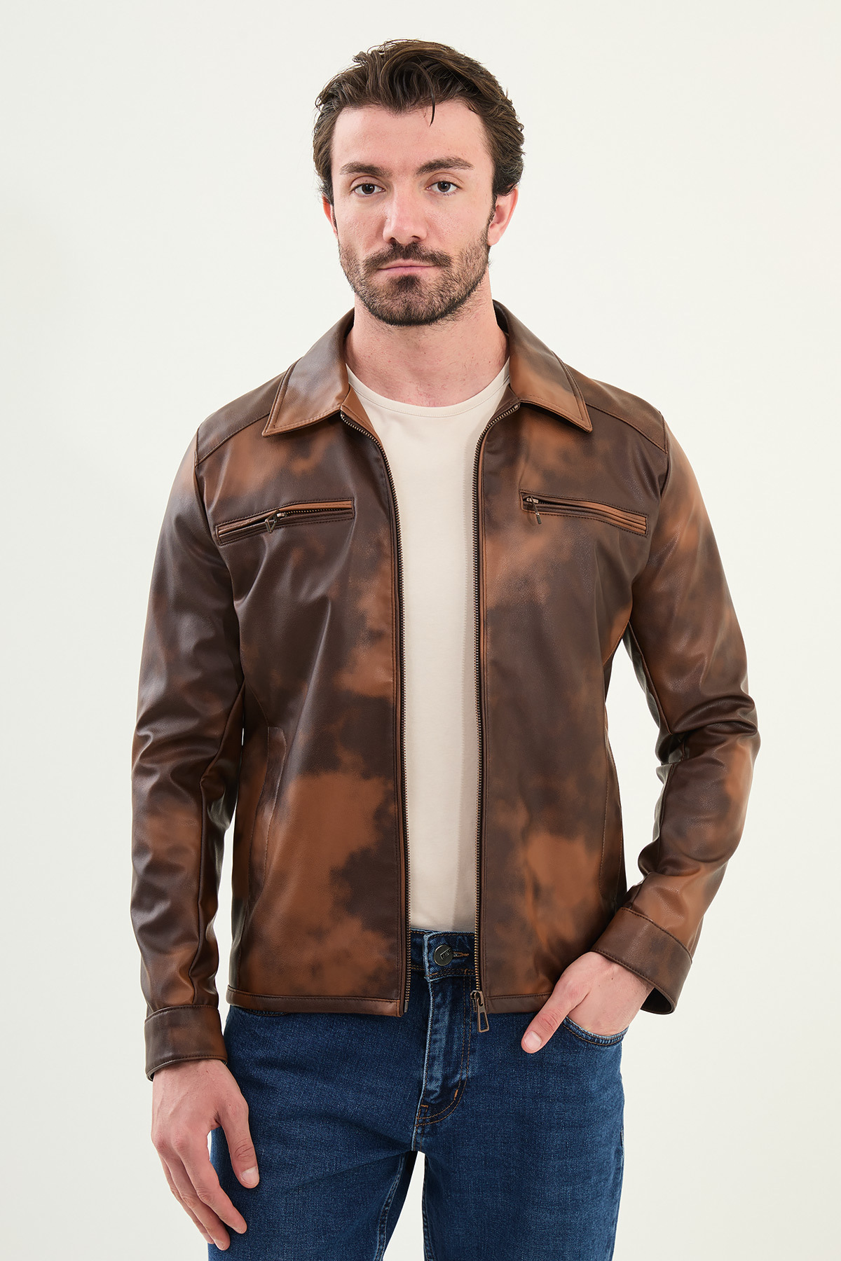 Desenli Slim Fit Gömlek Yaka Suni Deri Erkek Mont Siyah - 39647.25K Desenli Slim Fit Gömlek Yaka Suni Deri Erkek Mont Siyah - 39647.25K 58