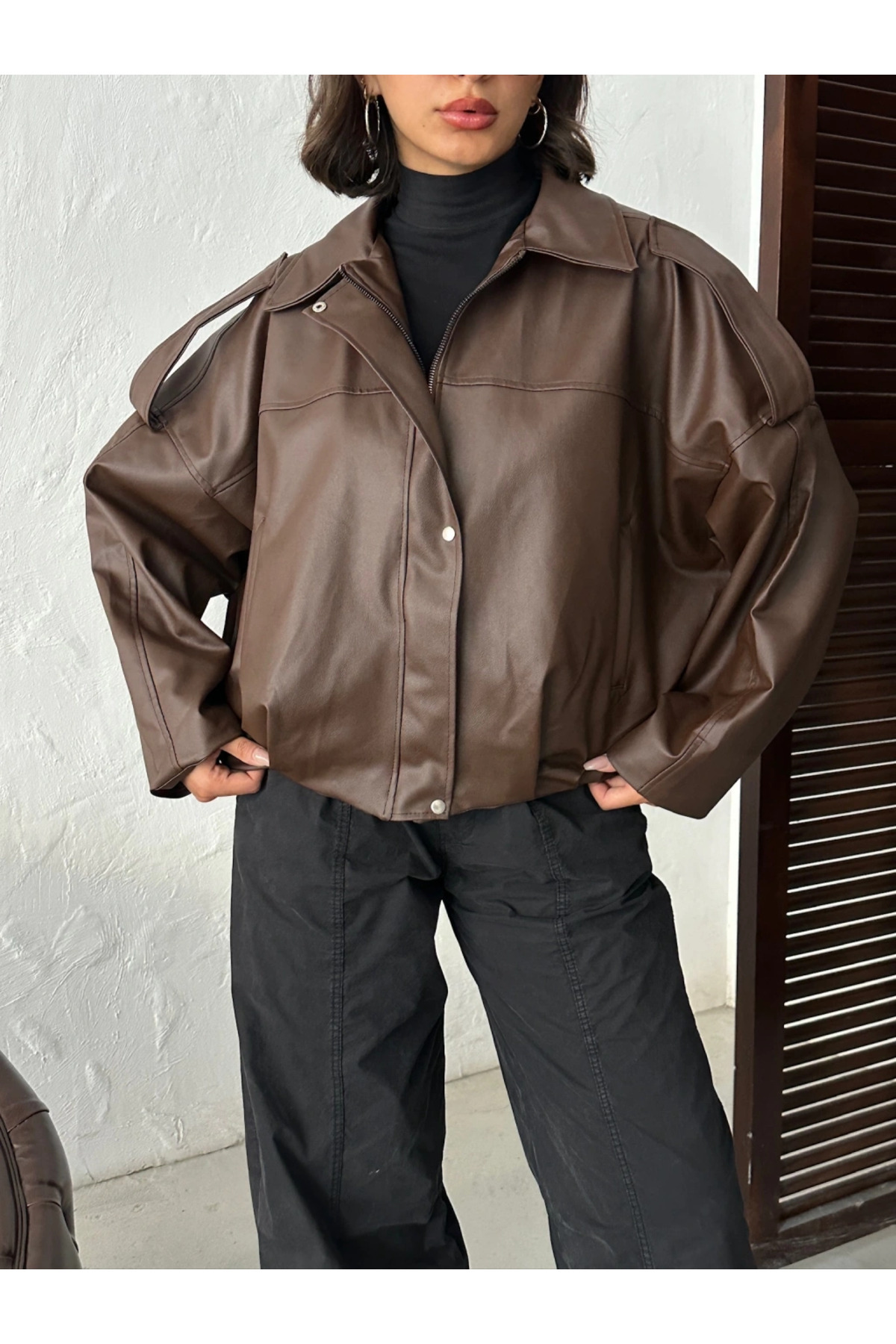 Oversize Apolet Detaylı Yeni Sezon Bomber Deri Ceket Oversize Apolet Detaylı Yeni Sezon Bomber Deri Ceket apoletli-bomber2020 L