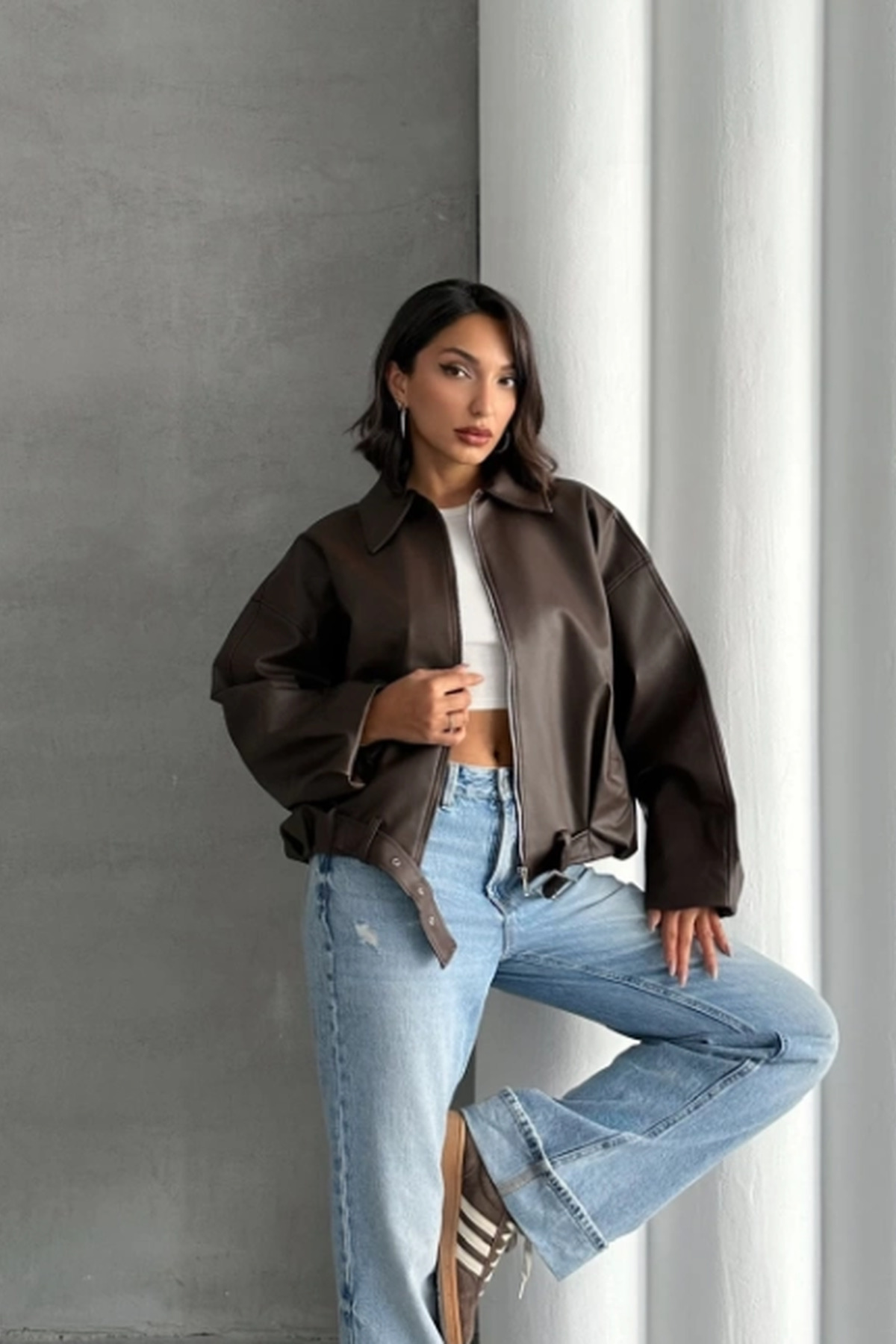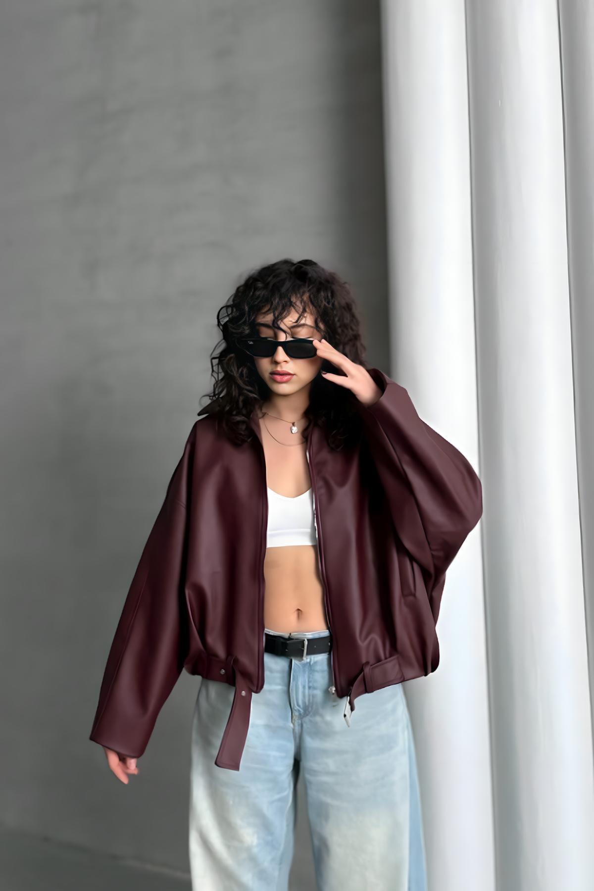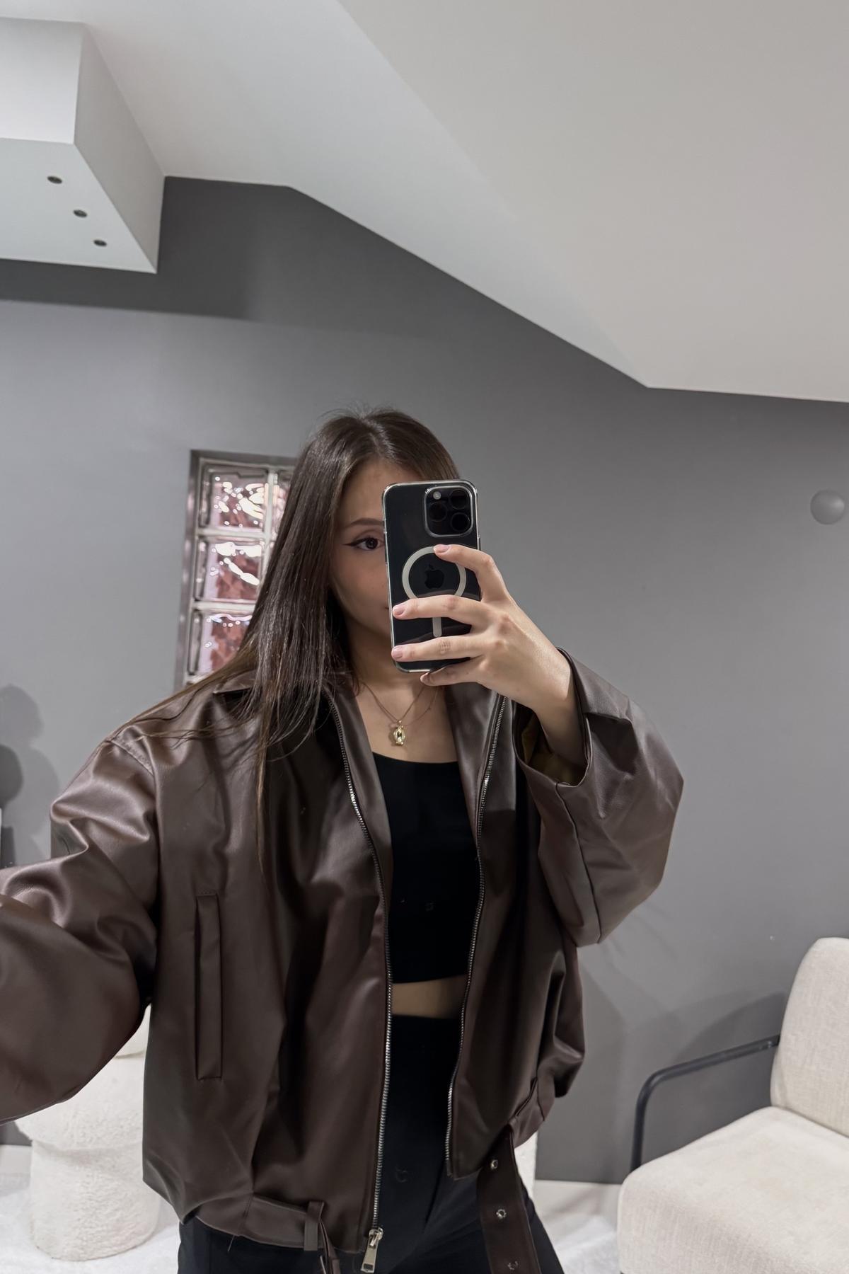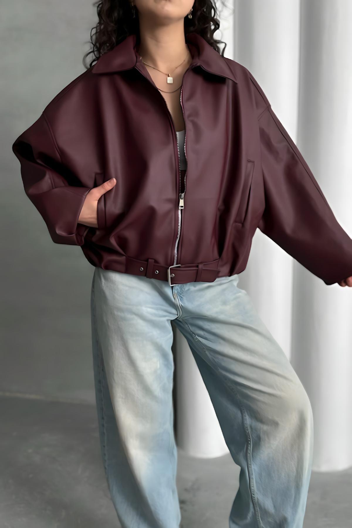 PB Oversize Bomber Kemerli Deri Ceket PB Oversize Bomber Kemerli Deri Ceket Yerdeks-2027-Kemerli-3 L
