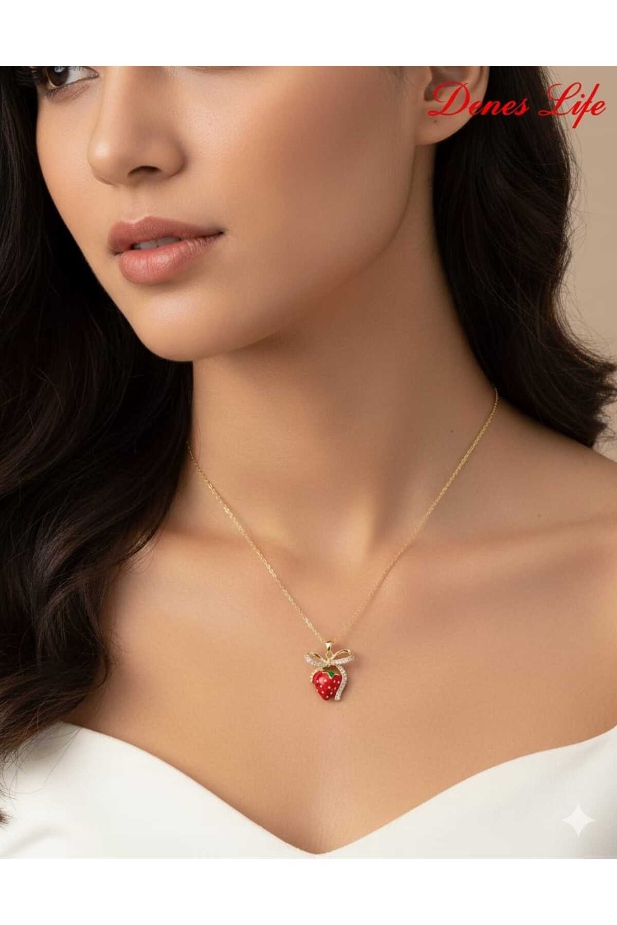 ÇİLEK DESENLİ KOLYE ÇİLEK DESENLİ KOLYE EJW132 30 cm