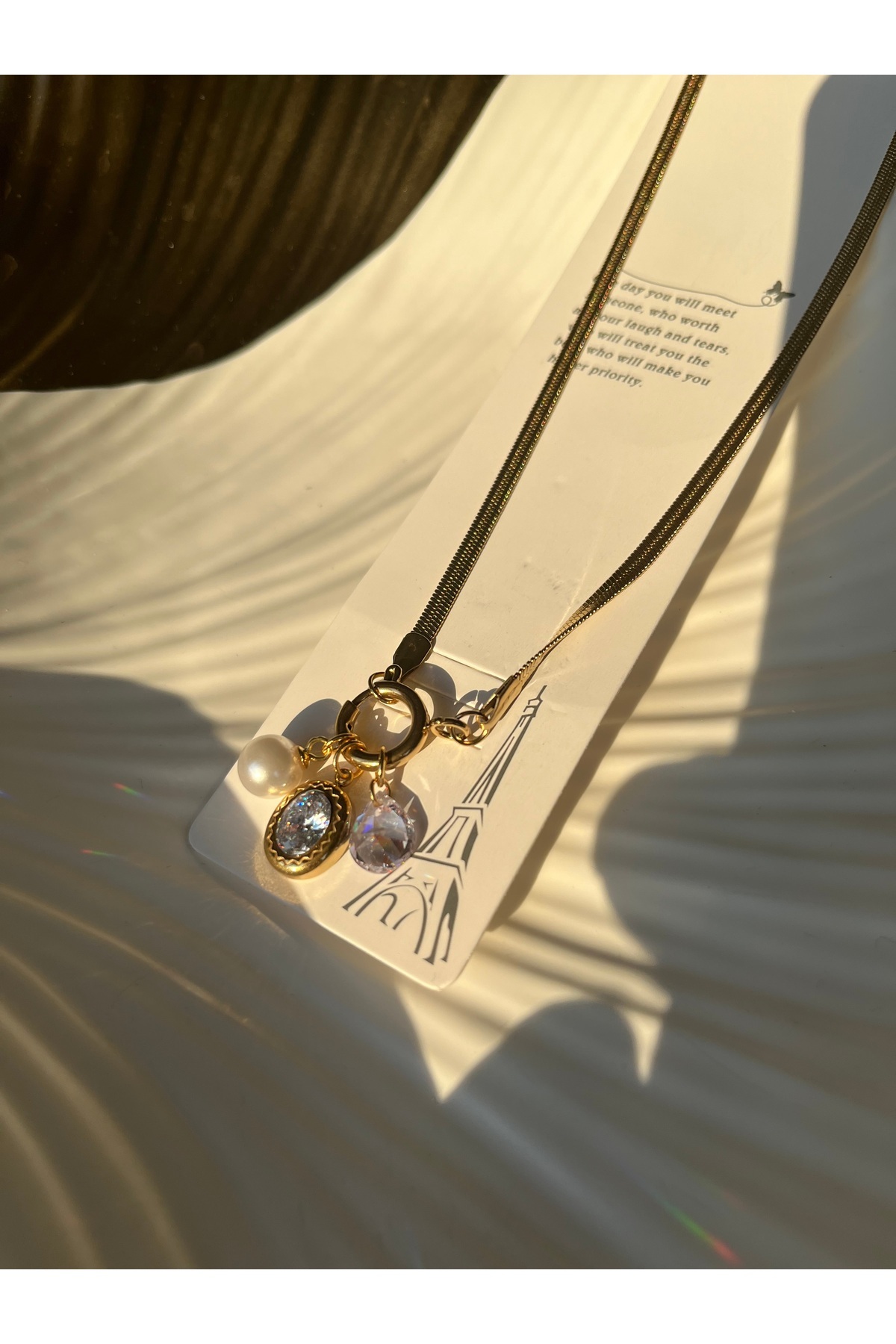 Çelik Üçgen Taşlı Kolye Çelik Üçgen Taşlı Kolye LSN-KLY-25-006 0