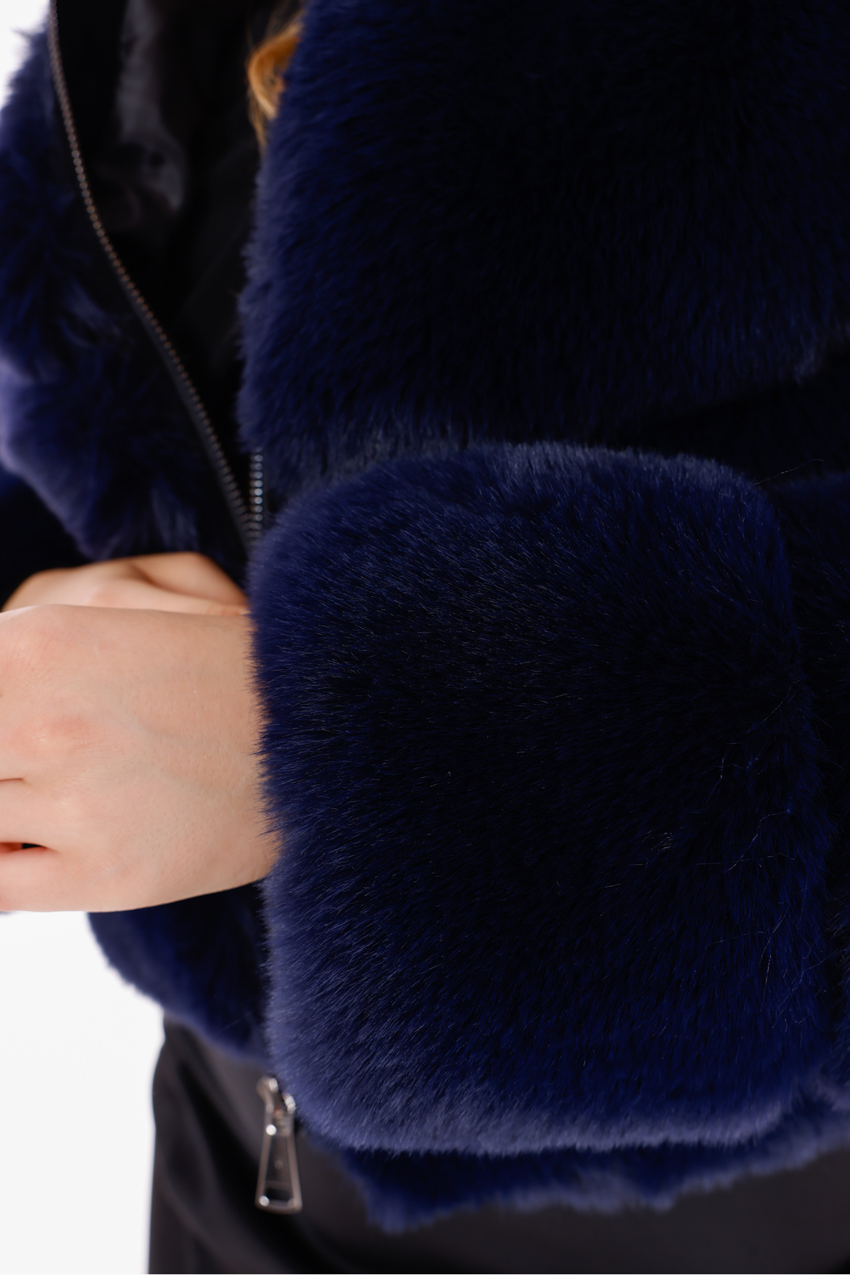VESTA İthal Peluşlu Dolgun Kapüşonlu Lacivert Suni Kürk Ceket VESTA İthal Peluşlu Dolgun Kapüşonlu Lacivert Suni Kürk Ceket NAZFUR02 XL
