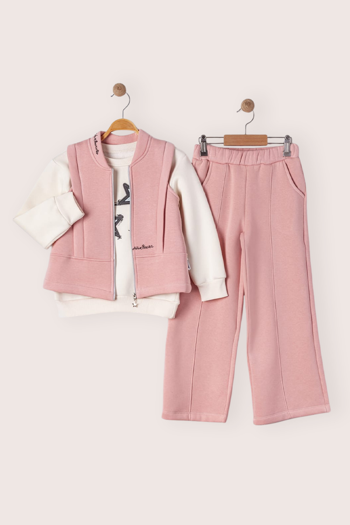 Kız Çocuk 3’lü Şardonlu Eşofman Takımı – Yelekli Sweatshirt & Geniş Paça Alt Kız Çocuk 3’lü Şardonlu Eşofman Takımı – Yelekli Sweatshirt & Geniş Paça Alt 5006YILDIZLI 8 Yaş