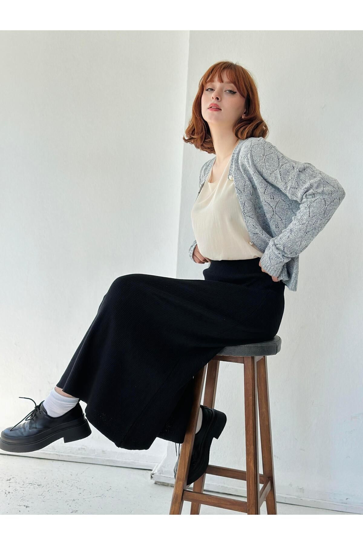 Özel Örgü Detaylı Siyah Triko Etek Özel Örgü Detaylı Siyah Triko Etek 250300710 XL