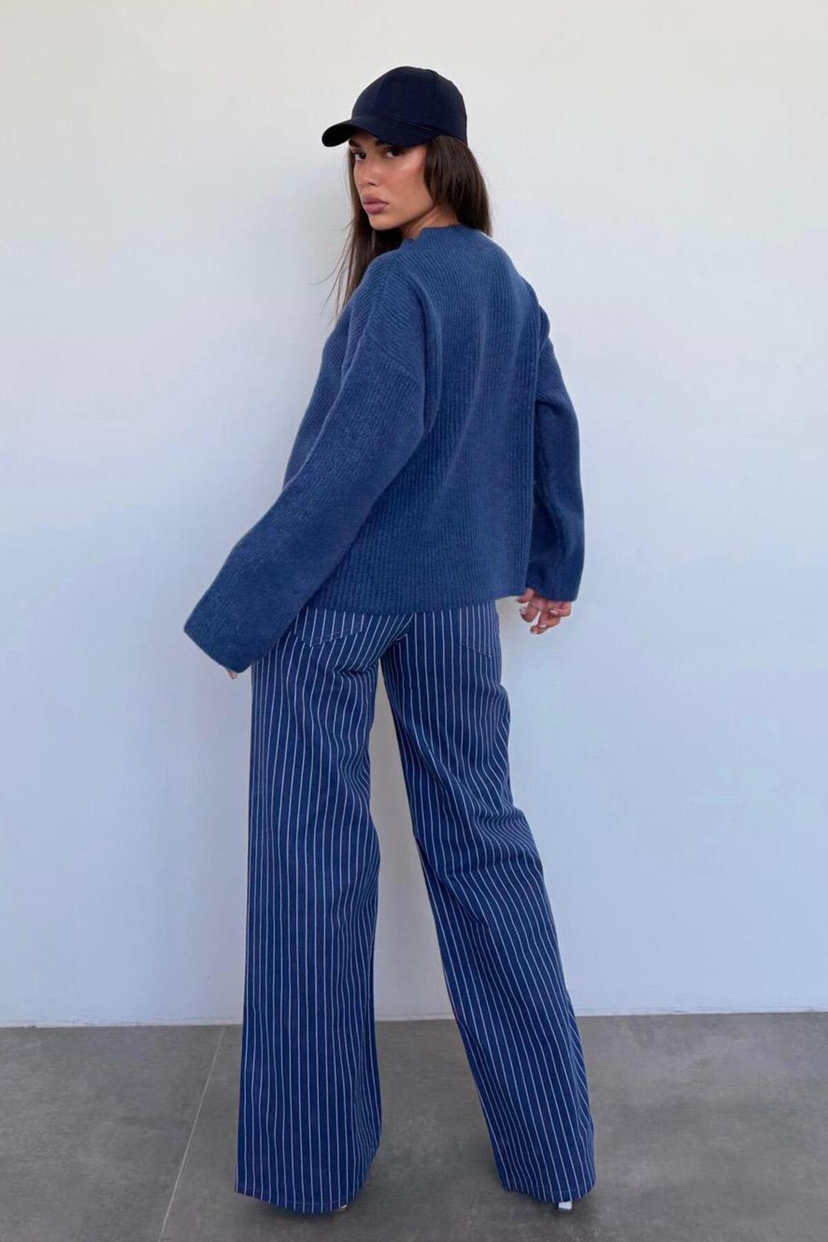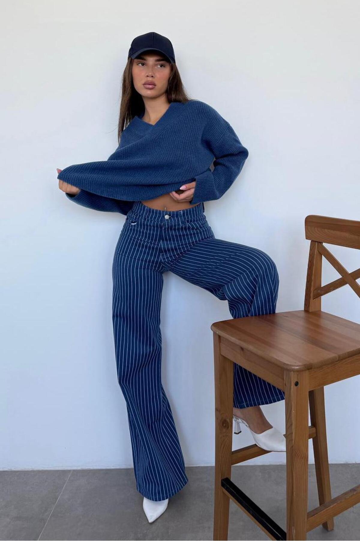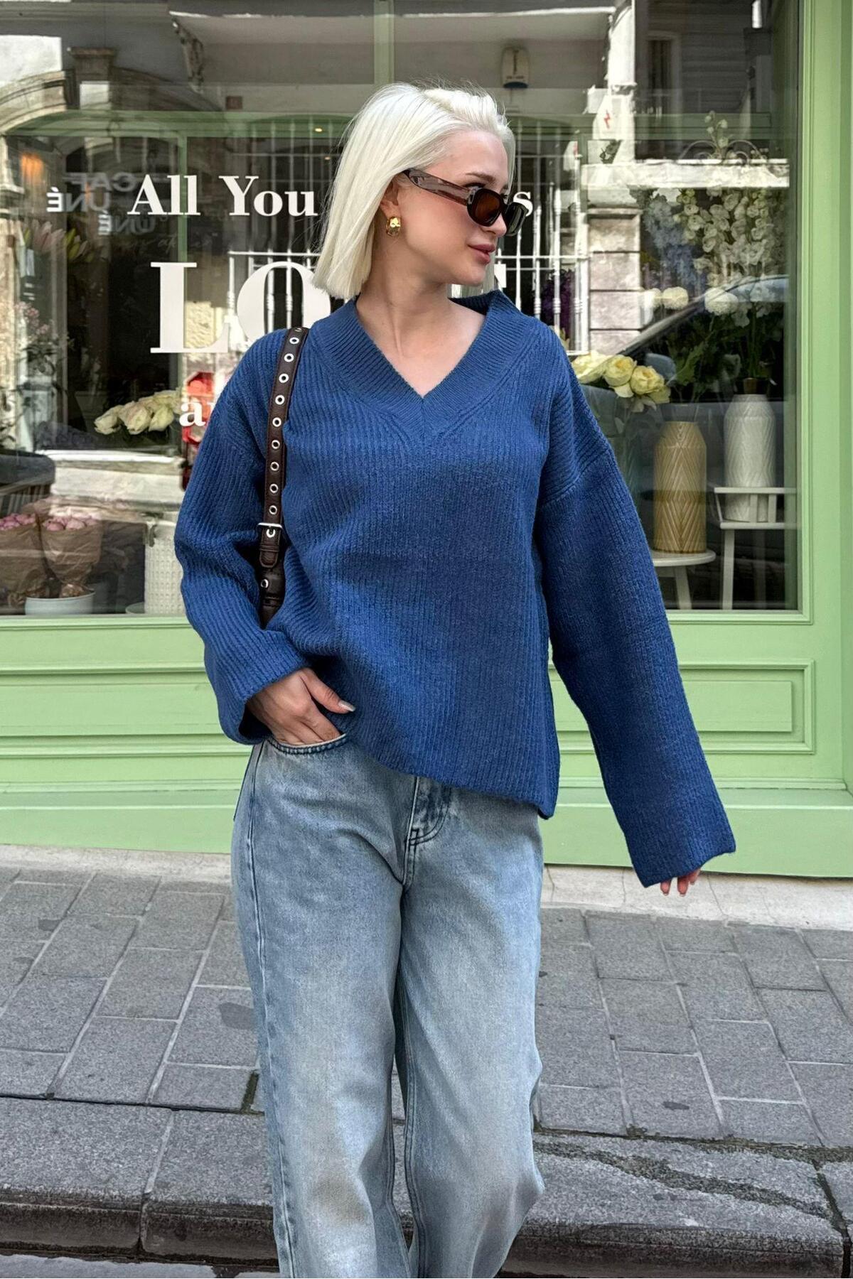 İndigo V Yaka Triko Kadın Kazak Mg2501 İndigo V Yaka Triko Kadın Kazak Mg2501 XL