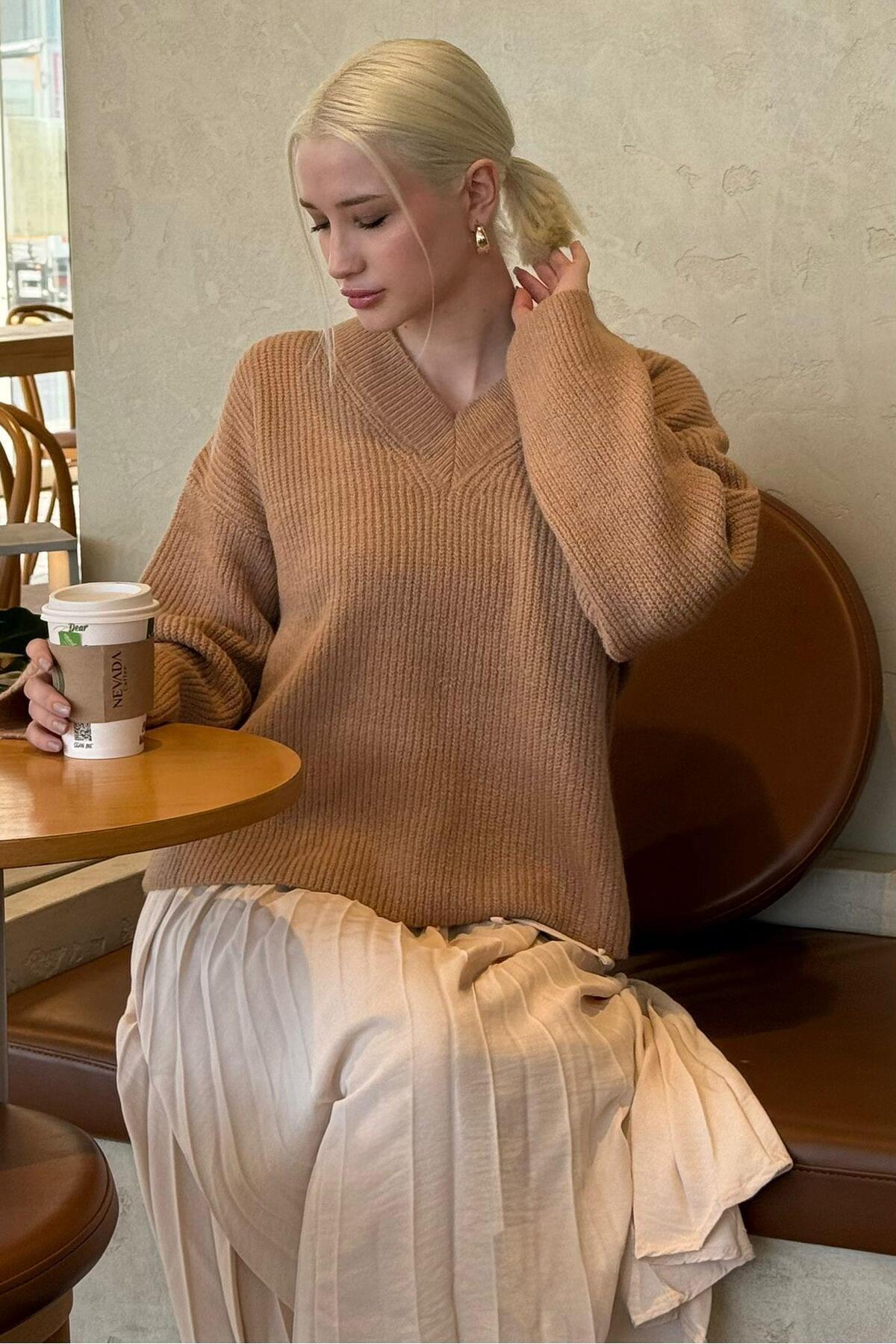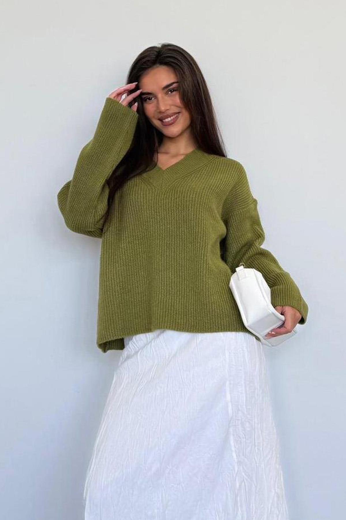 Yağ Yeşili V Yaka Triko Kadın Kazak Mg2501 Yağ Yeşili V Yaka Triko Kadın Kazak Mg2501 XL