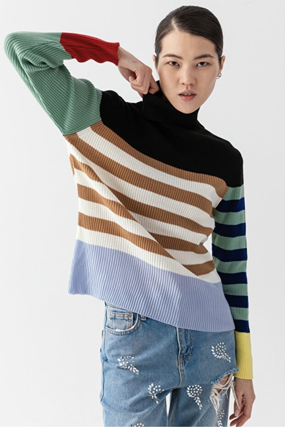 Renk Bloklu Oversize Yumuşak Dokulu Triko Kazak AW25KZ0016 Renk Bloklu Oversize Yumuşak Dokulu Triko Kazak AW25KZ0016 L
