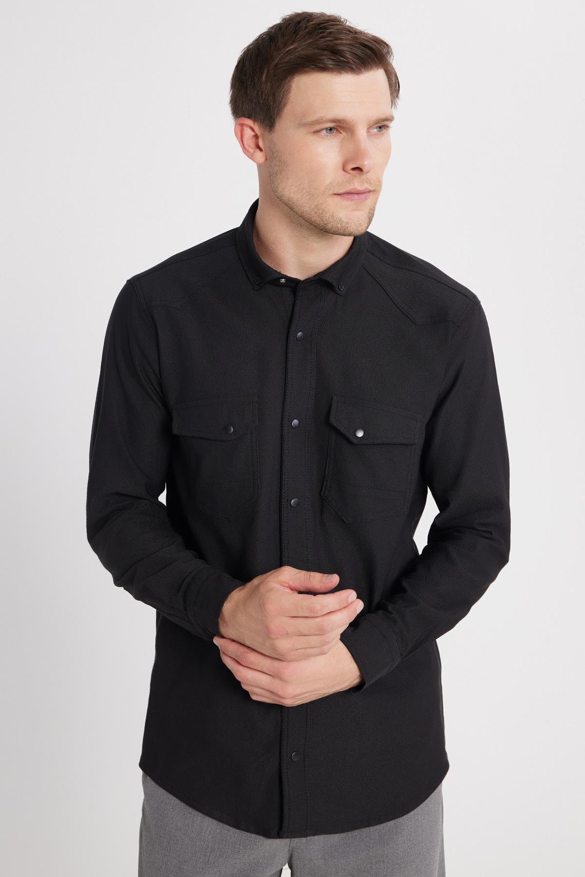 Erkek Regular Fit Rahat Kesim Çift Cepli Spor Yaka Denim Petrol Gömlek Erkek Regular Fit Rahat Kesim Çift Cepli Spor Yaka Denim Petrol Gömlek RG250012 2XL