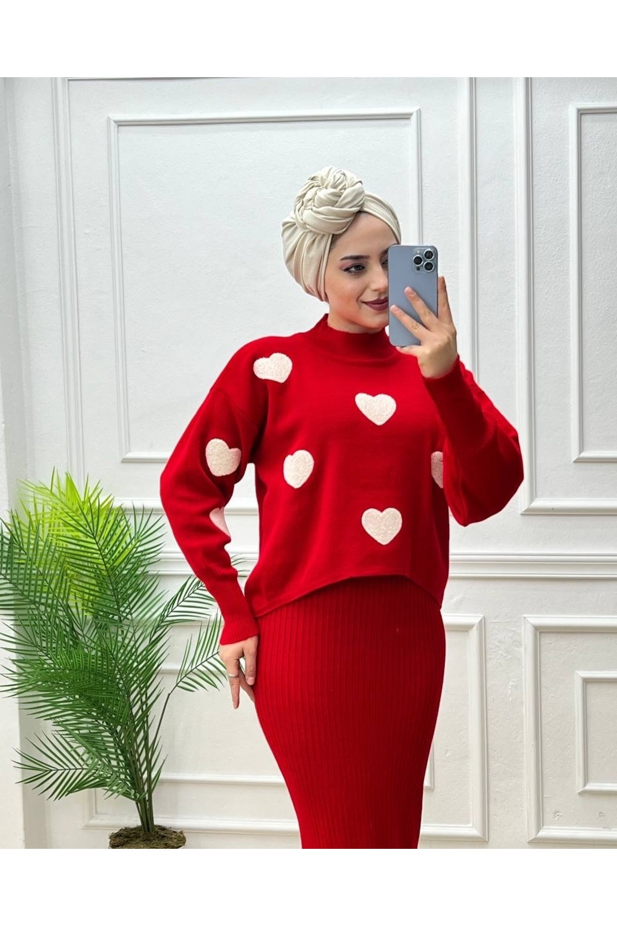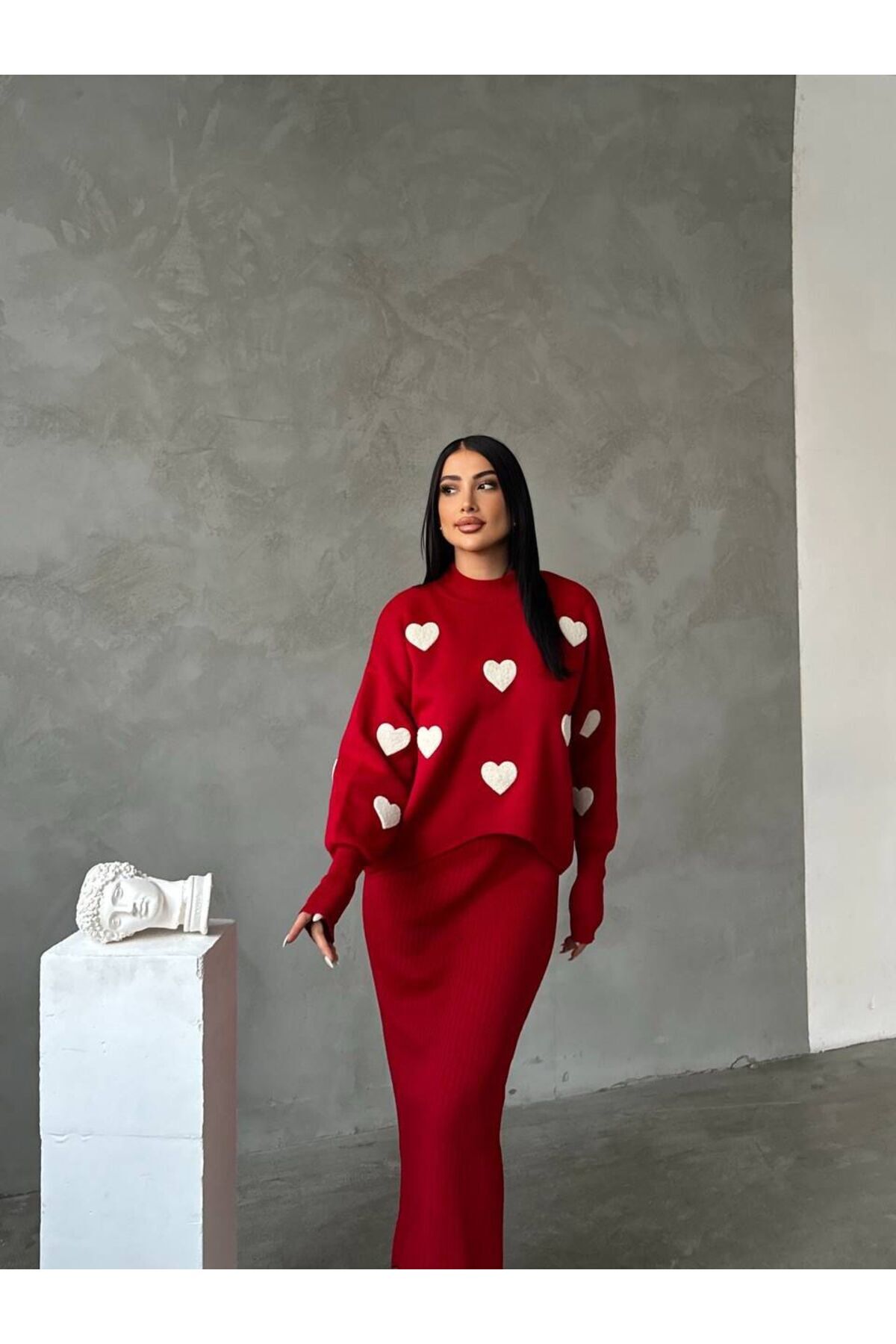 KADIN TRİKO KALPLİ JİLE ELBİSE KAZAK TAKIM KADIN TRİKO KALPLİ JİLE ELBİSE KAZAK TAKIM KALPLİJİLE Standart