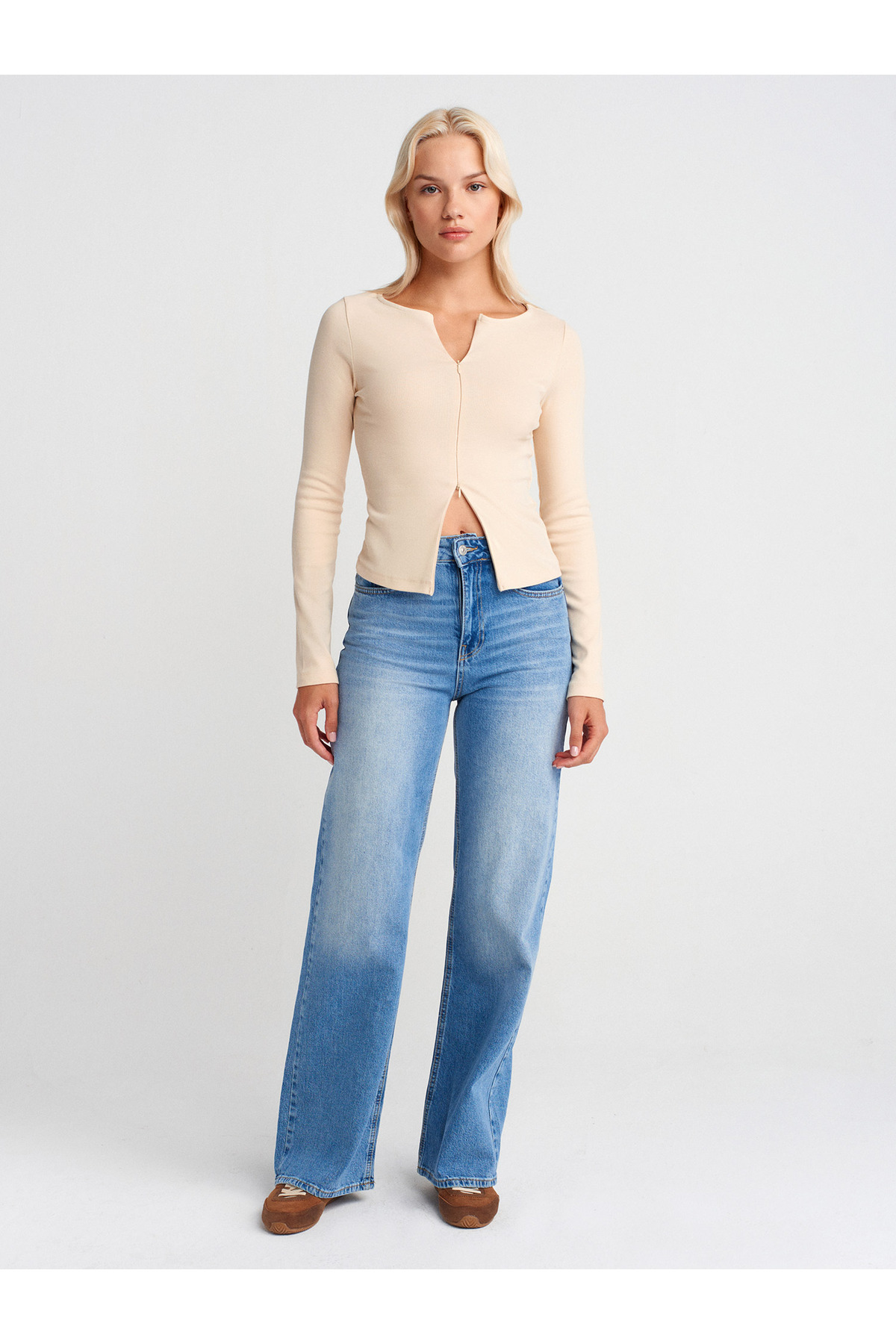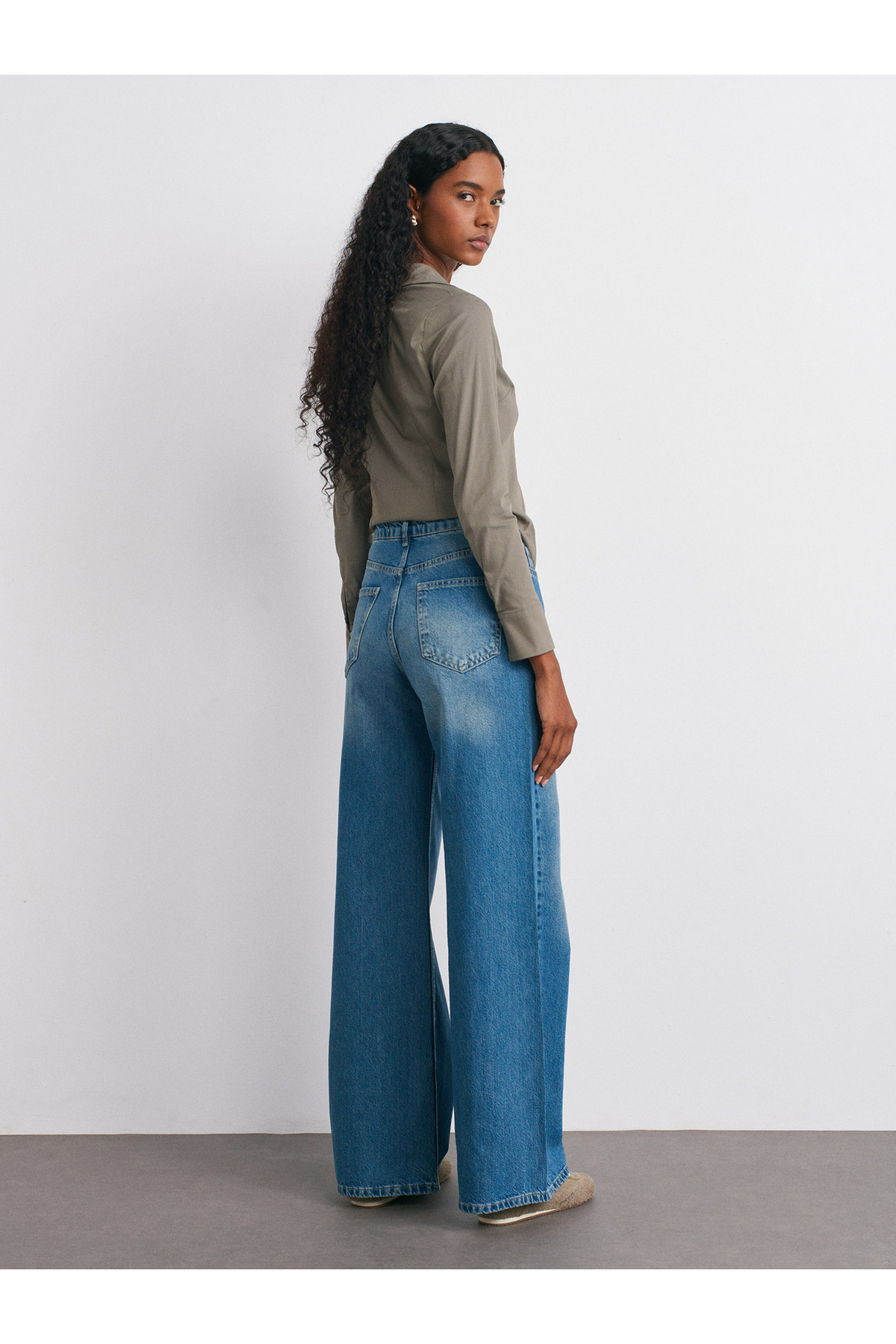 72037 Kendinden Tintli Geniş Denim Pantolon-Tint 72037 Kendinden Tintli Geniş Denim Pantolon-Tint 101A72037 40