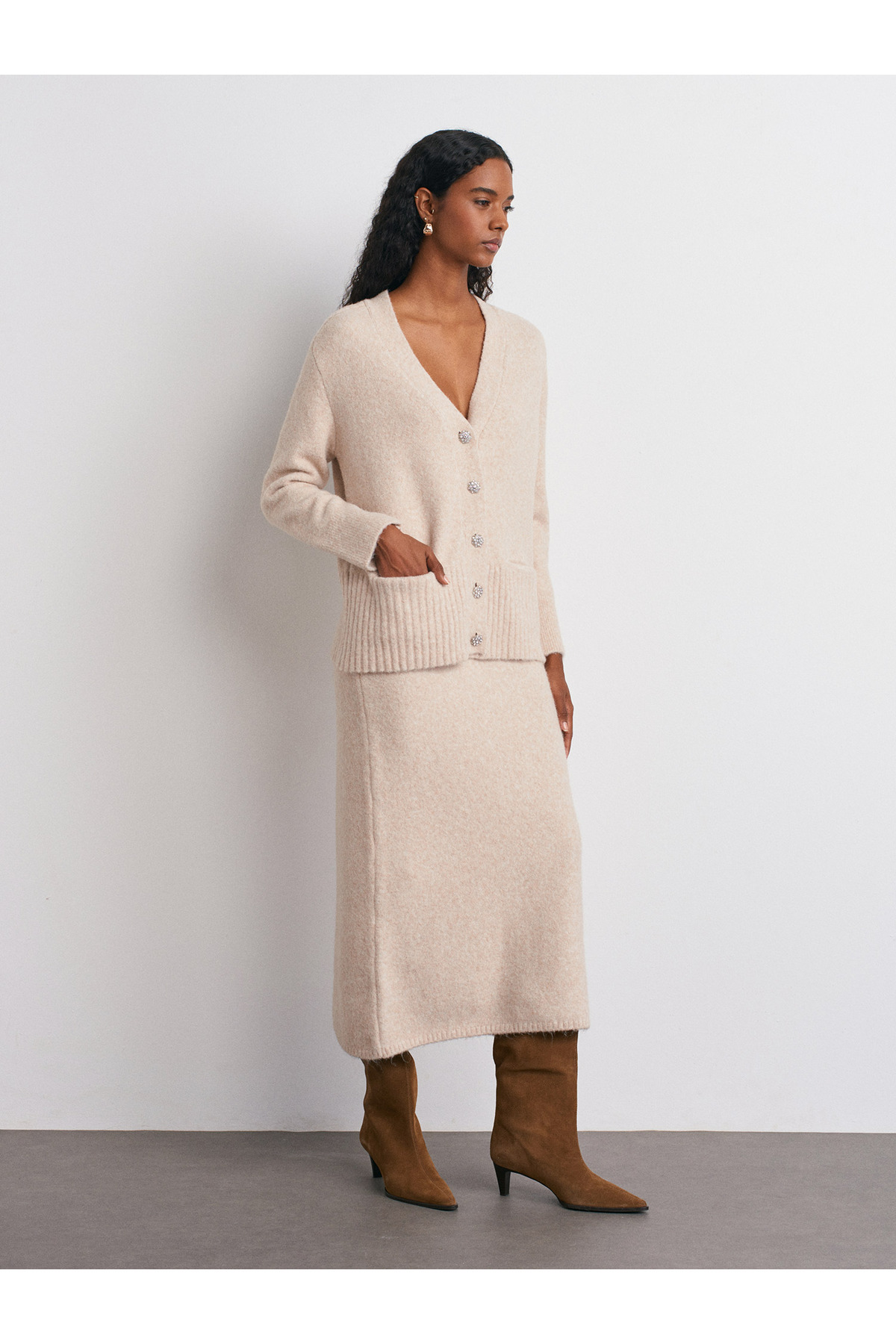 60269 V Yaka Taş Düğmeli Cepli Yumuşak Dokulu Triko Hırka-A.Bej Mel. 60269 V Yaka Taş Düğmeli Cepli Yumuşak Dokulu Triko Hırka-A.Bej Mel. 101A60269 Standart