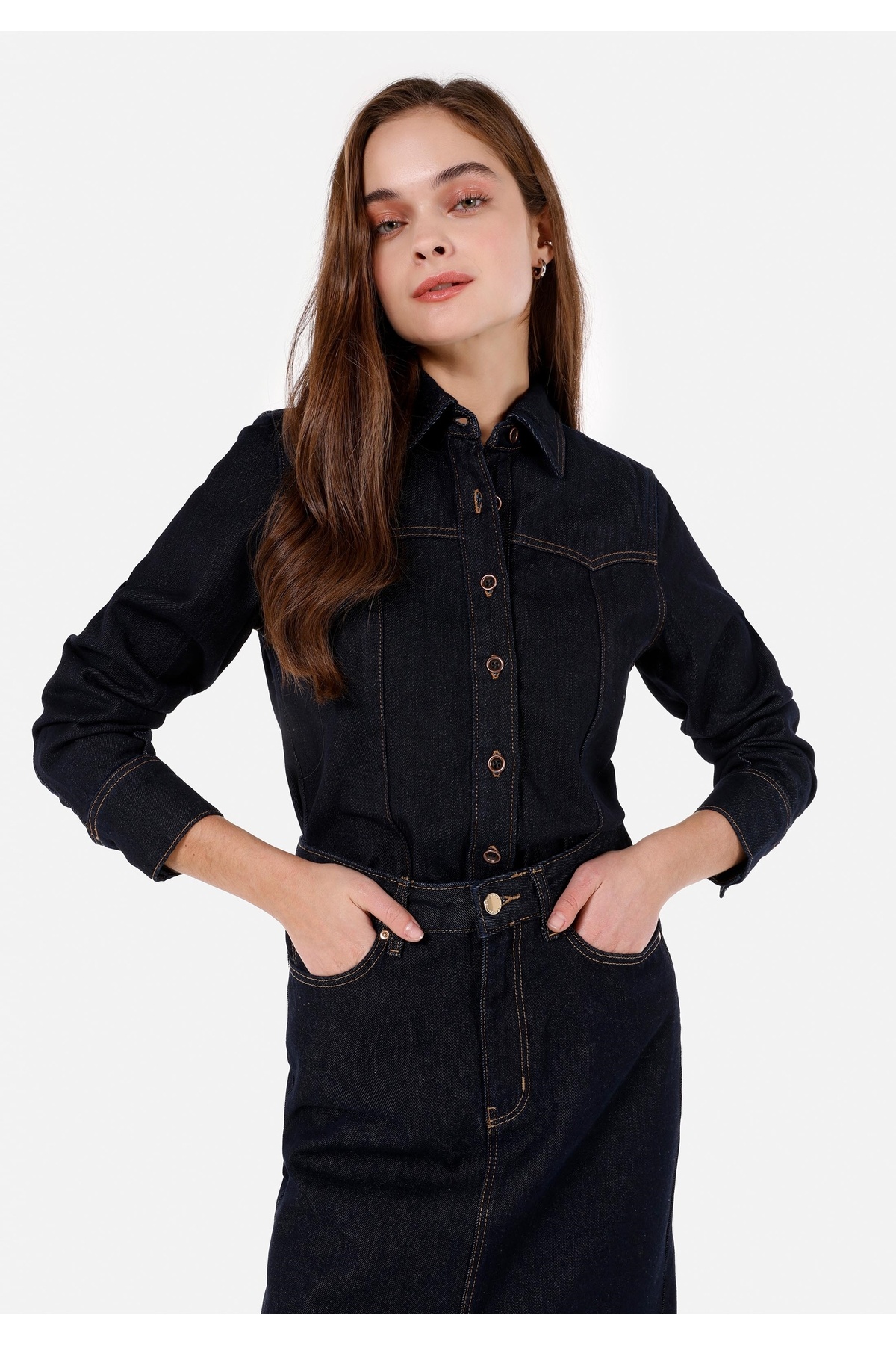 Kadın Normal Kalıp Uzun Kollu Pamuklu Denim Lacivert Gömlek WW0WW47453-1BK Kadın Normal Kalıp Uzun Kollu Pamuklu Denim Lacivert Gömlek WW0WW47453-1BK 42