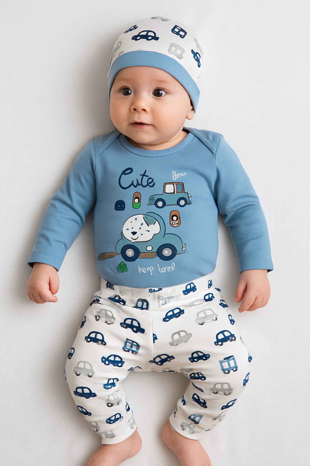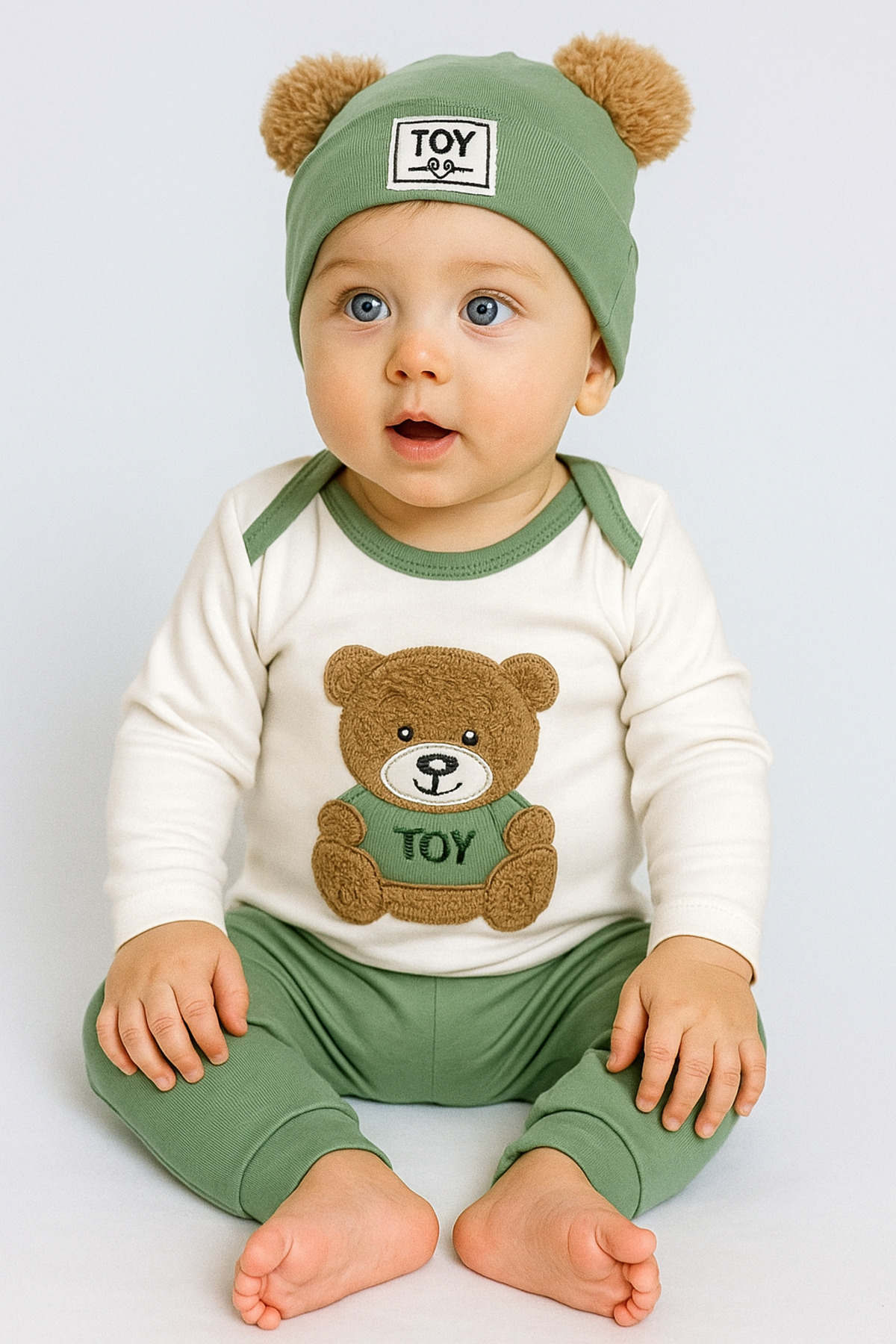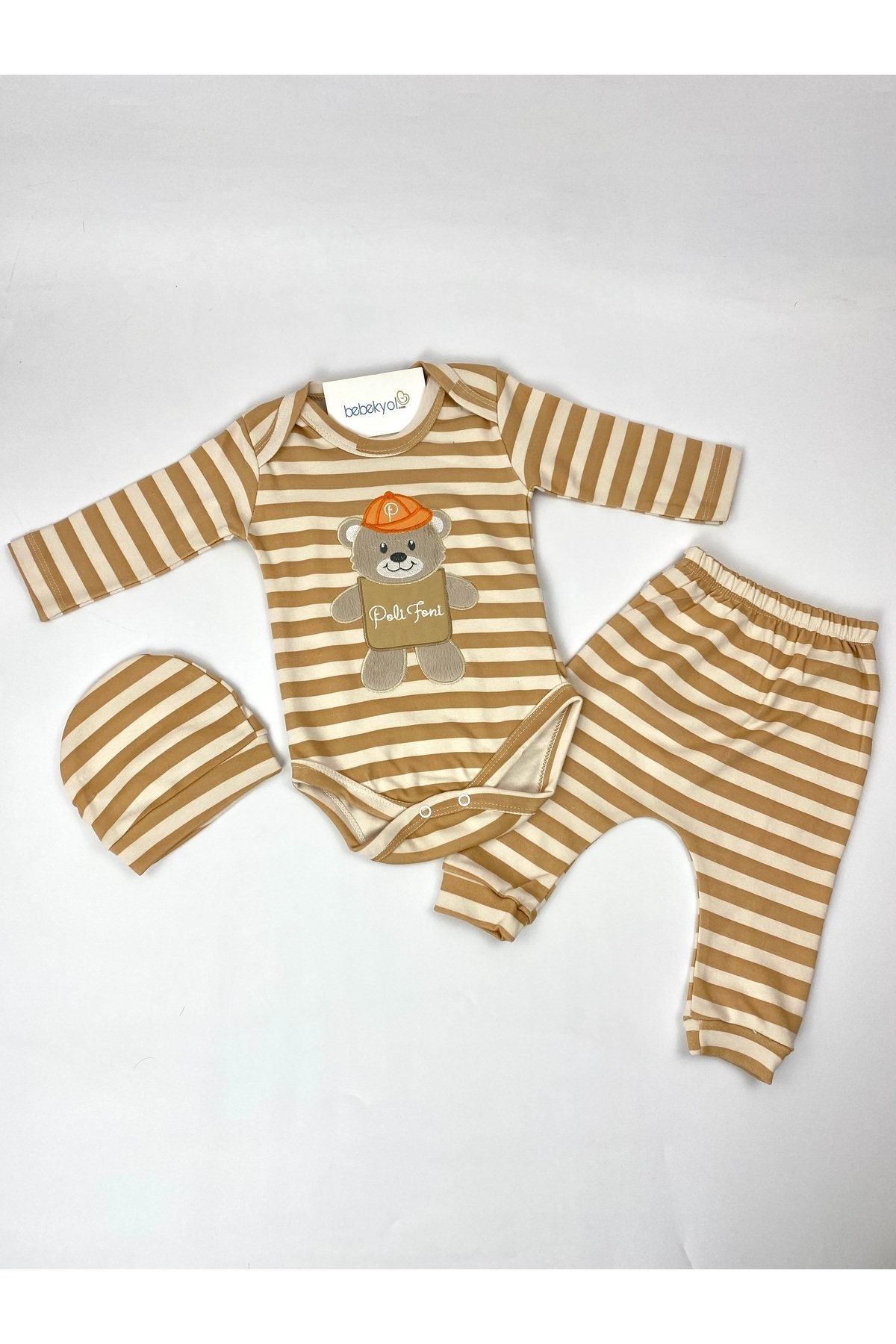 Çizgili Ayı Nakışlı Bebek Takımı Çizgili Ayı Nakışlı Bebek Takımı byy1680 6-9 AY