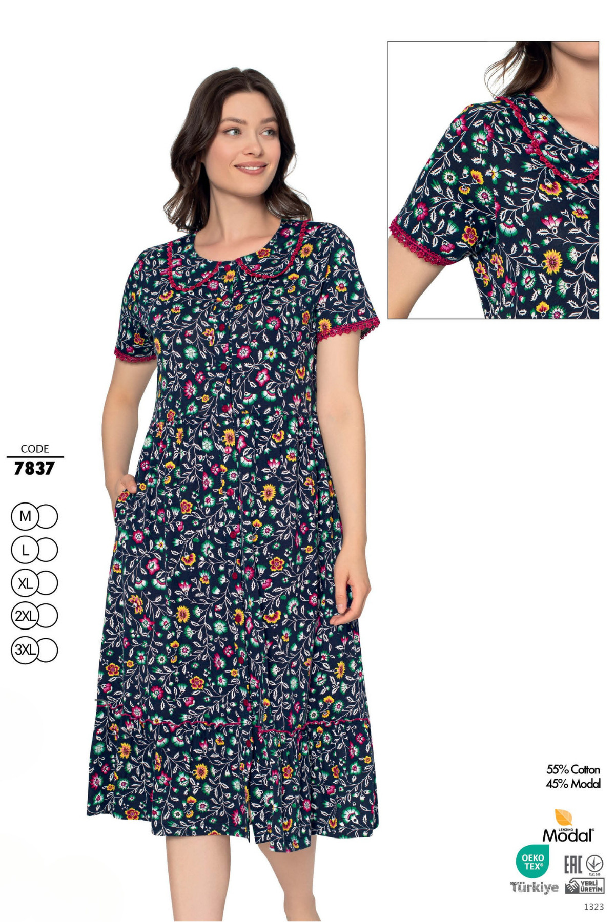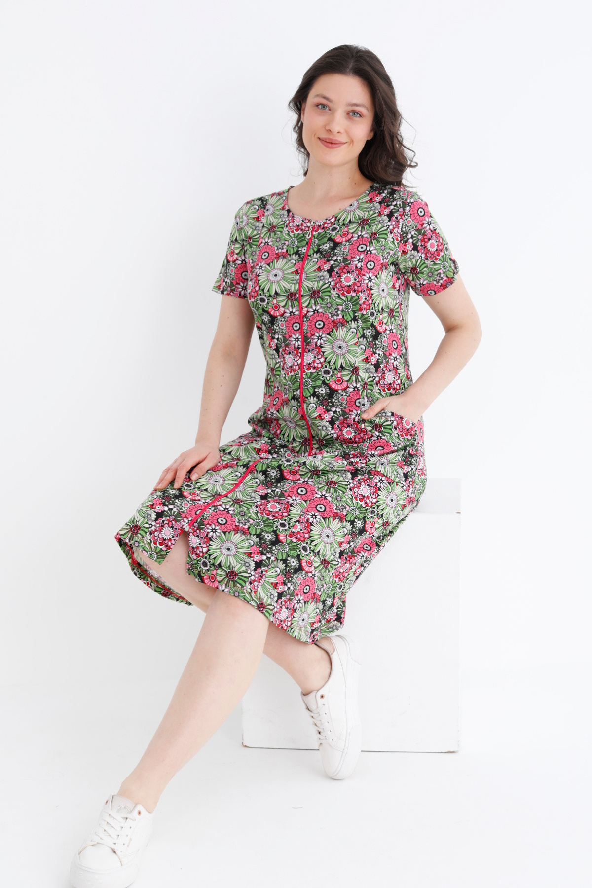 Rahat Kalıp Çiçek Desenli Pamuklu Boydan Fermuarlı Cepli Kadın Bisiklet Yaka Elbise Rahat Kalıp Çiçek Desenli Pamuklu Boydan Fermuarlı Cepli Kadın Bisiklet Yaka Elbise 25245 2XL