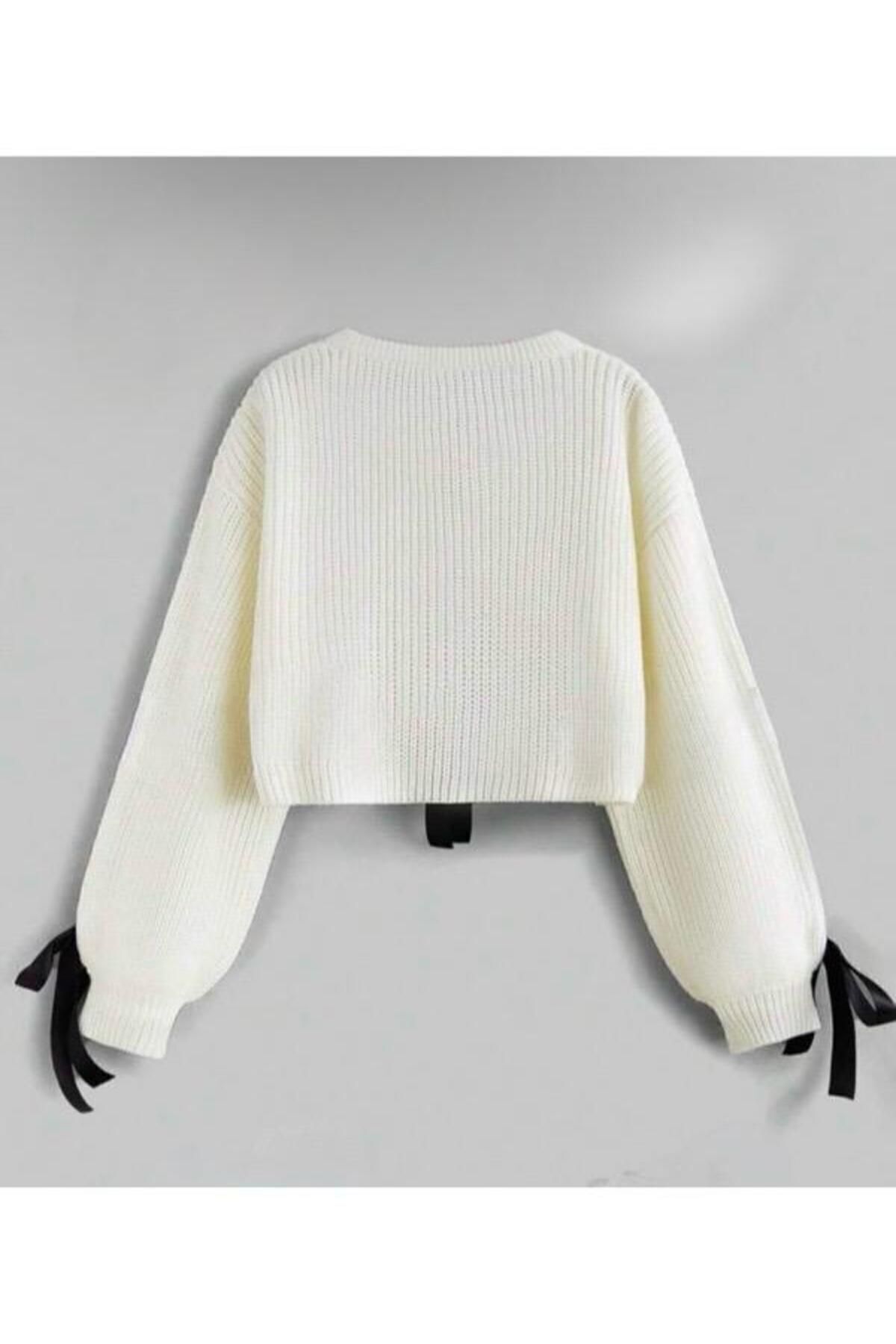 Fiyonklu Kurdele Detaylı Triko Ceket Hırka Fiyonklu Kurdele Detaylı Triko Ceket Hırka 1005 Standart