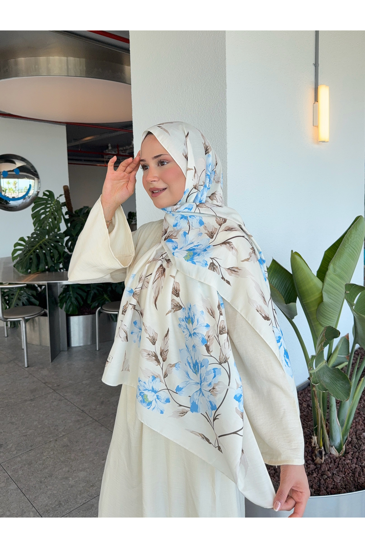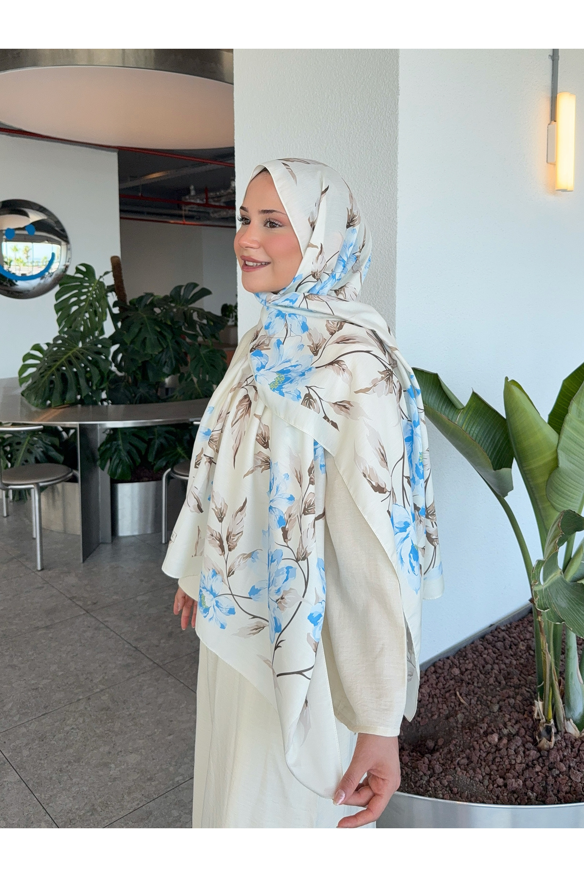 Desenli Pamuk Soft Şal İlham Serisi Ekru Mavi ps87 Desenli Pamuk Soft Şal İlham Serisi Ekru Mavi ps87 ilhamserisi1 75 x 180