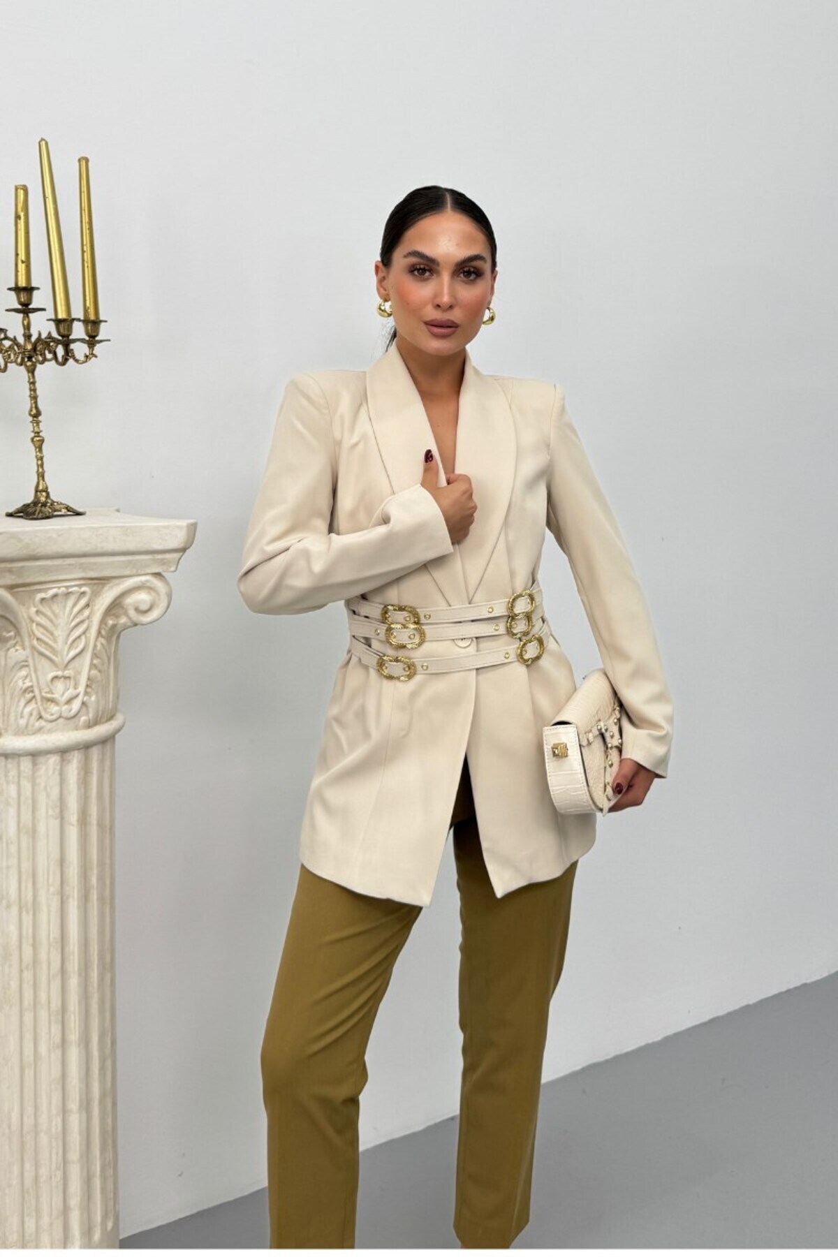 Kadın Blazer Ceket Şık Kruvaze Yaka Vatkalı Gold Kemer Detaylı Ceket Kadın Blazer Ceket Şık Kruvaze Yaka Vatkalı Gold Kemer Detaylı Ceket PRA-13066338-034413 42