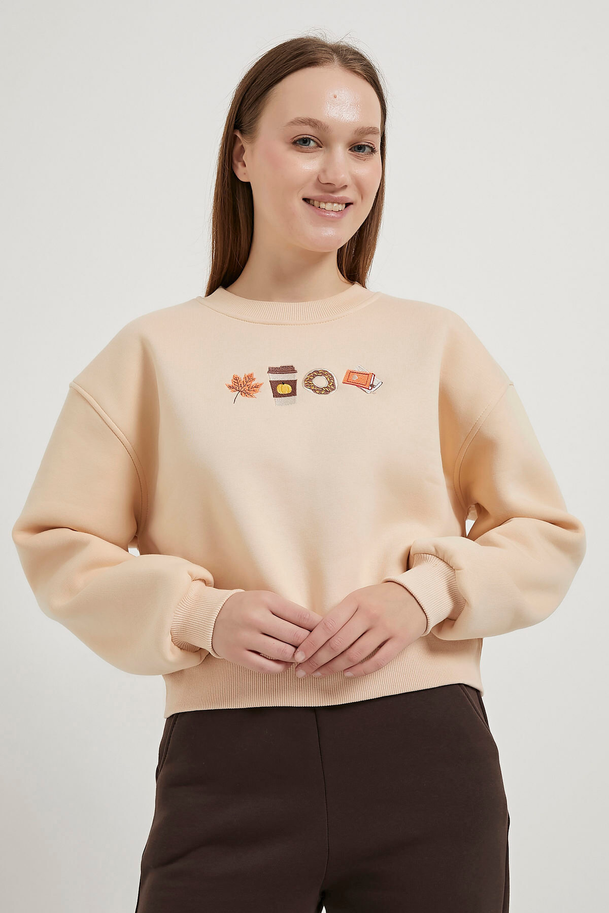 Kadın Desenli Şardonlu Yeşil Bol Crop Sweatshirt Kadın Desenli Şardonlu Yeşil Bol Crop Sweatshirt 155-5KB10601SWT L