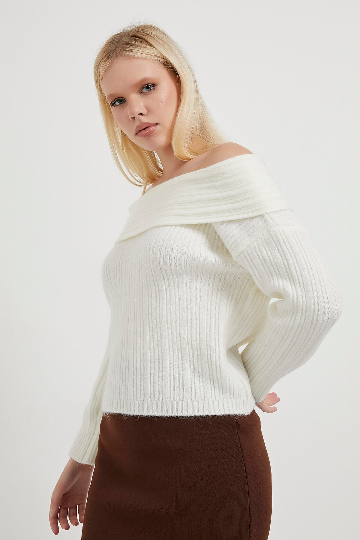 Kadın Madonna Yaka Omzu Açık Düz Bordo Triko Kazak Kadın Madonna Yaka Omzu Açık Düz Bordo Triko Kazak 476-5KB1179KZK Standart