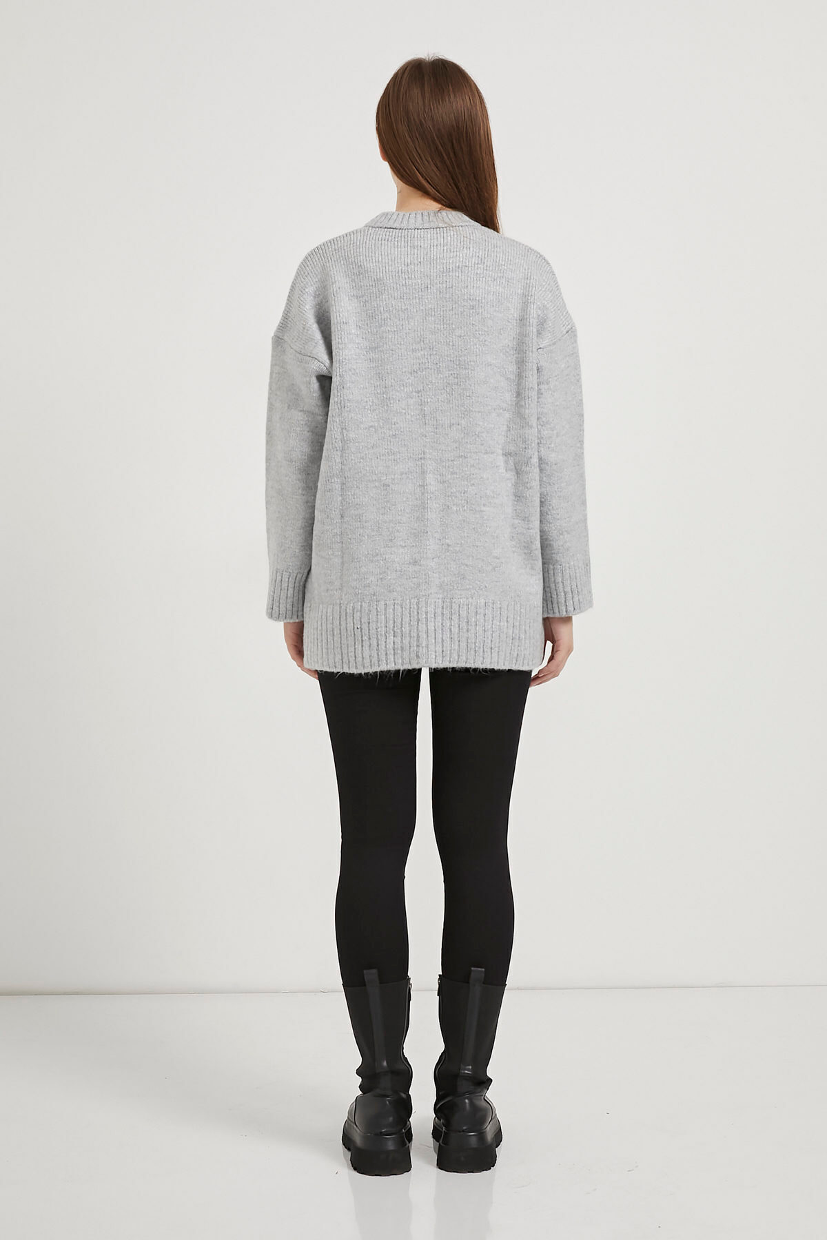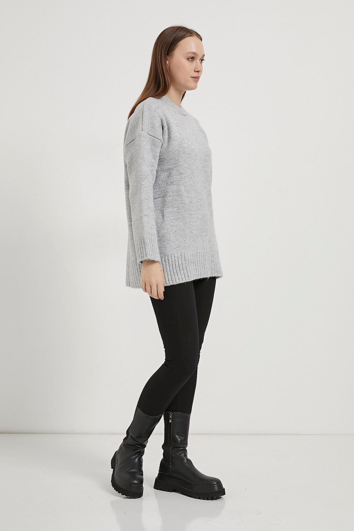 Kadın Bisiklet Yaka Bol Basic Gri Oversize Kazak Kadın Bisiklet Yaka Bol Basic Gri Oversize Kazak 476-5KB1106KZK Standart