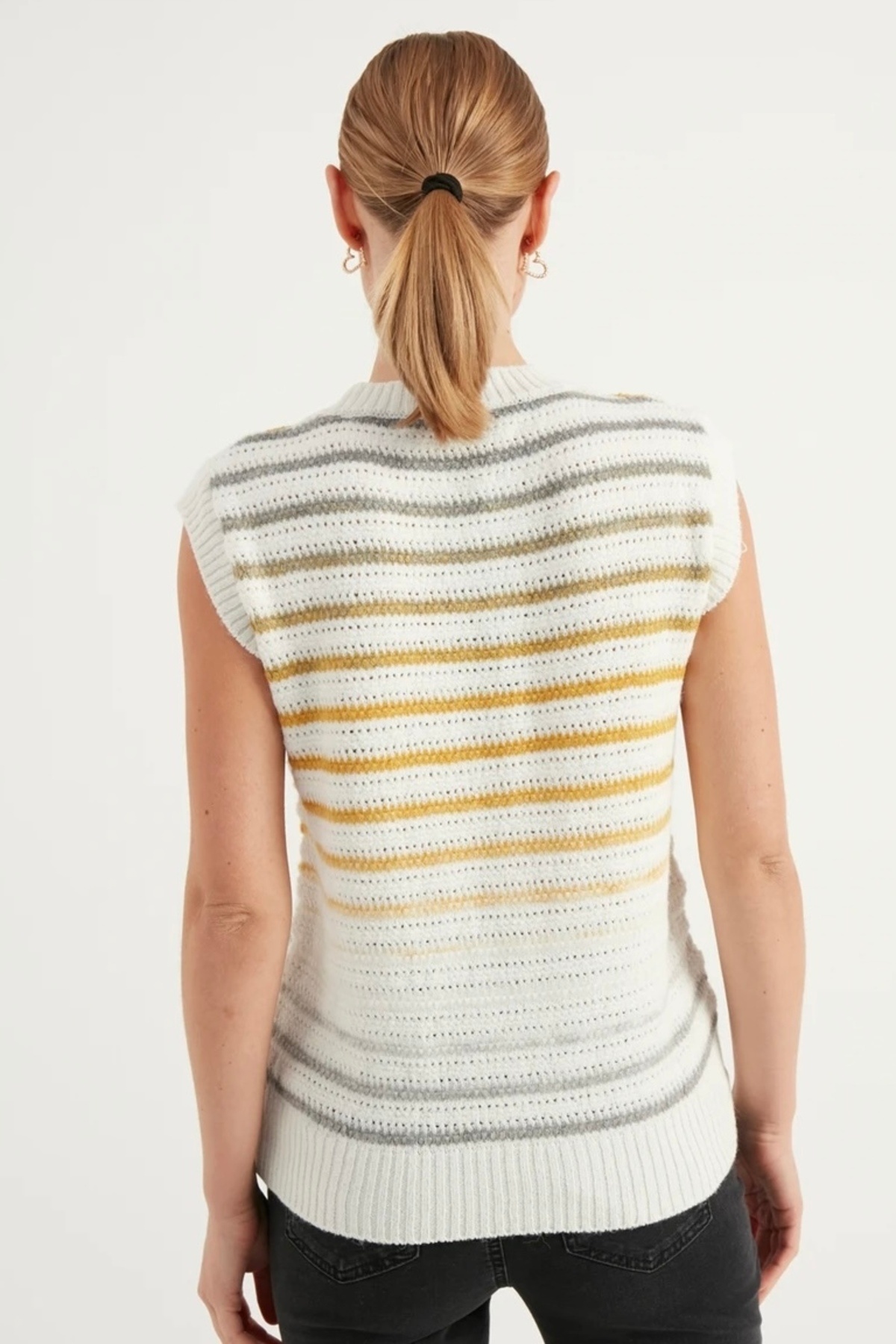 Bisiklet Yaka Yumuşak Dokulu Çizgili Triko Süveter AW25SV0001 Bisiklet Yaka Yumuşak Dokulu Çizgili Triko Süveter AW25SV0001 L