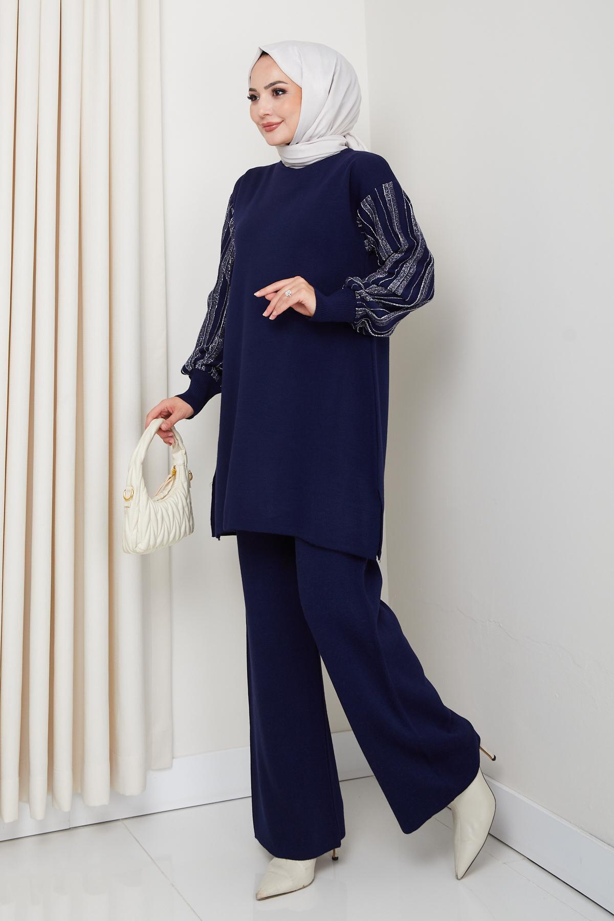 Örme Sim Desenli Triko Tunik Pantolon Takım Örme Sim Desenli Triko Tunik Pantolon Takım BTL356 MSTD
