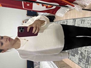 Beyaz Bisiklet Yaka Oversize Triko Kazak SH173 Beyaz Bisiklet Yaka Oversize Triko Kazak SH173 XL