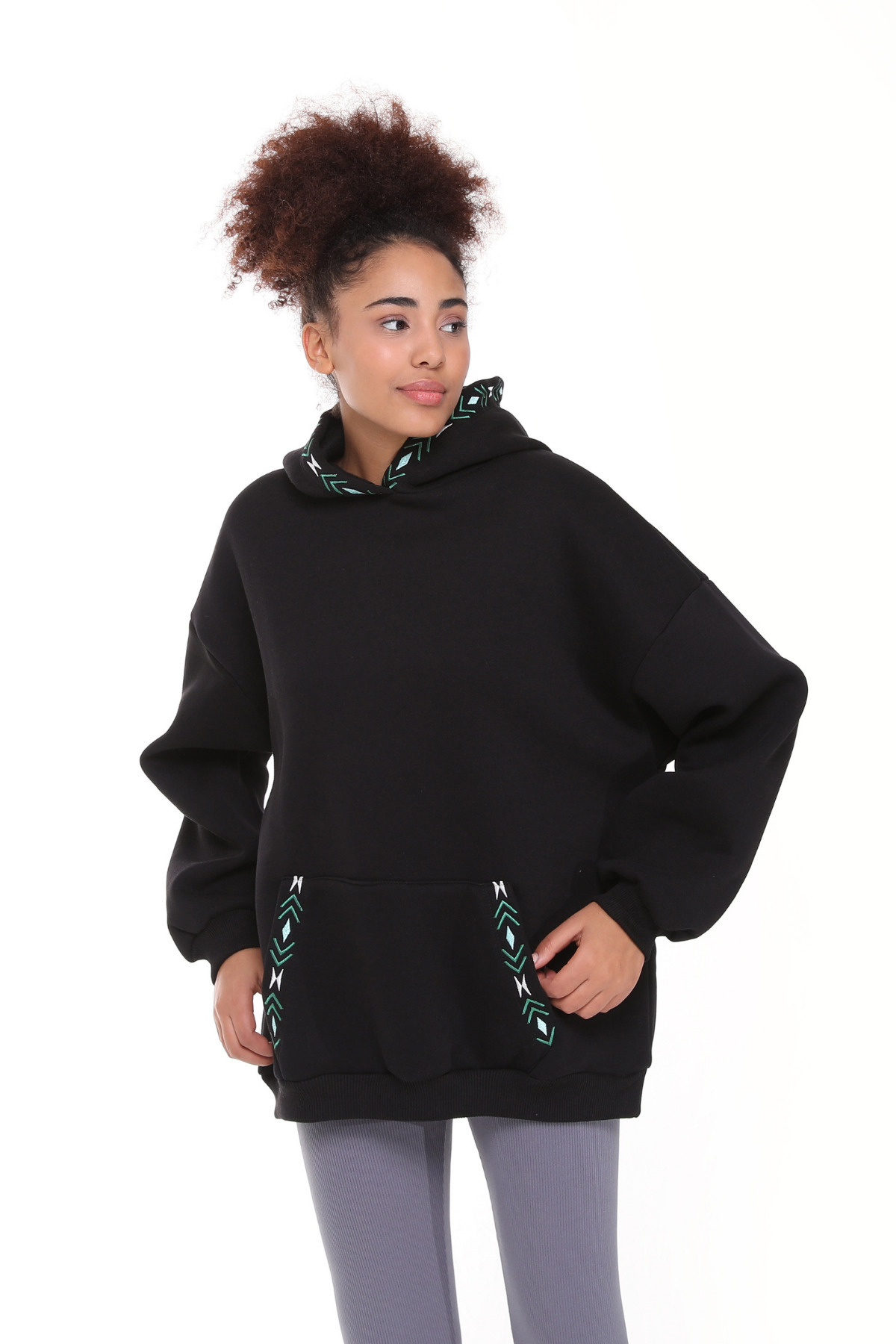 Kadın Kapüşonlu Kanguru Cepli Nakış Baskı Detaylı Uzun Kol Oversize Sweatshirt Kadın Kapüşonlu Kanguru Cepli Nakış Baskı Detaylı Uzun Kol Oversize Sweatshirt fncy9032swe Standart