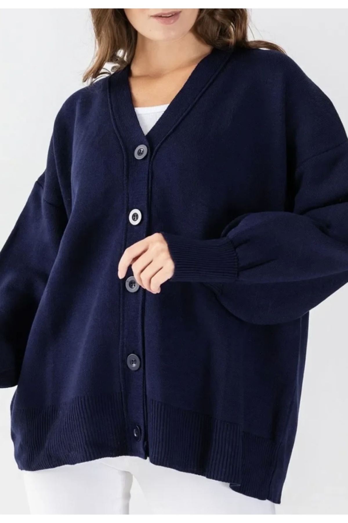 Basic Oversize Cepli Yumuşak Dokulu Triko Hırka AW25HI0013 Basic Oversize Cepli Yumuşak Dokulu Triko Hırka AW25HI0013 L