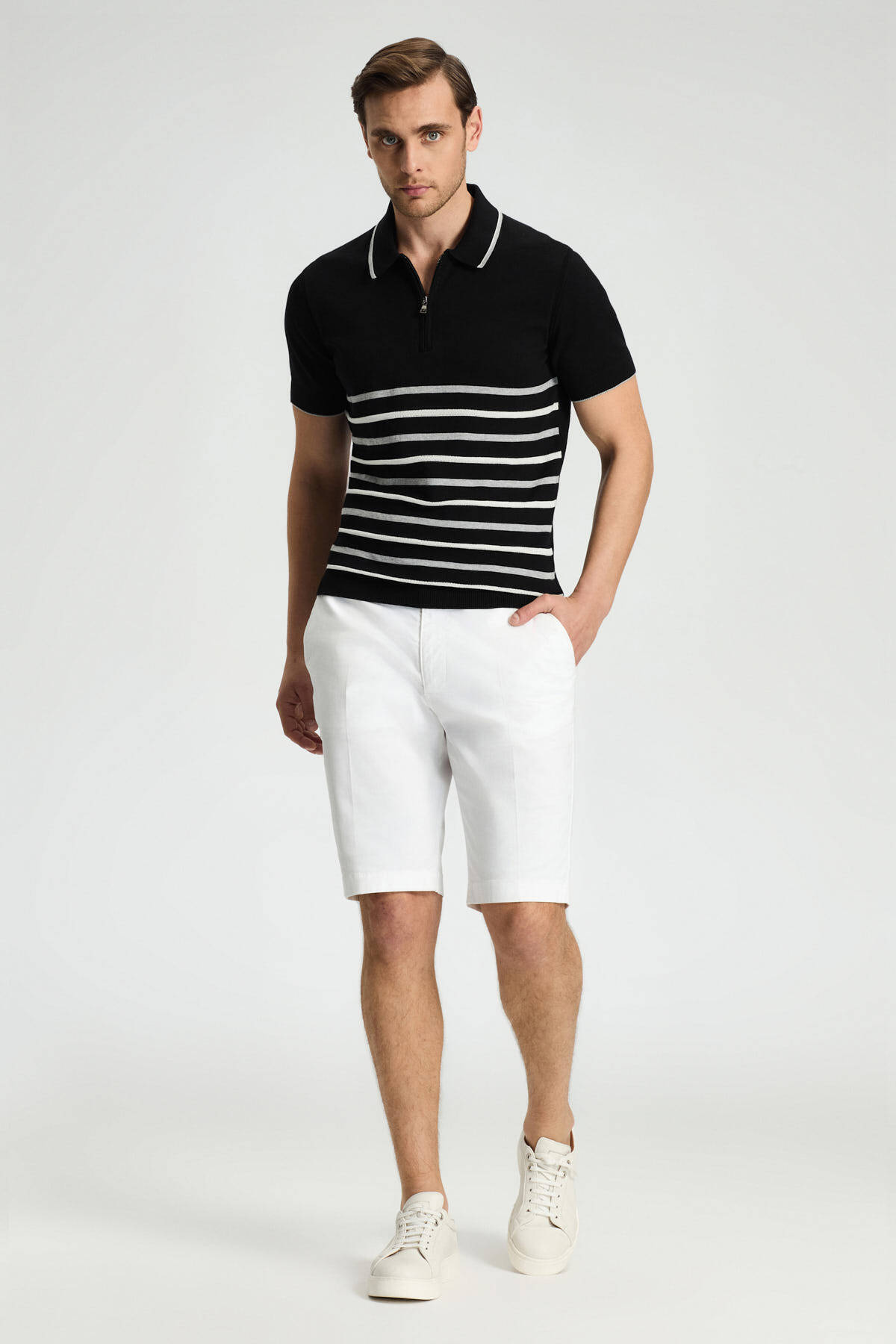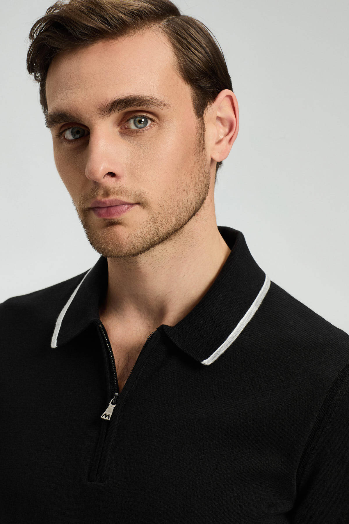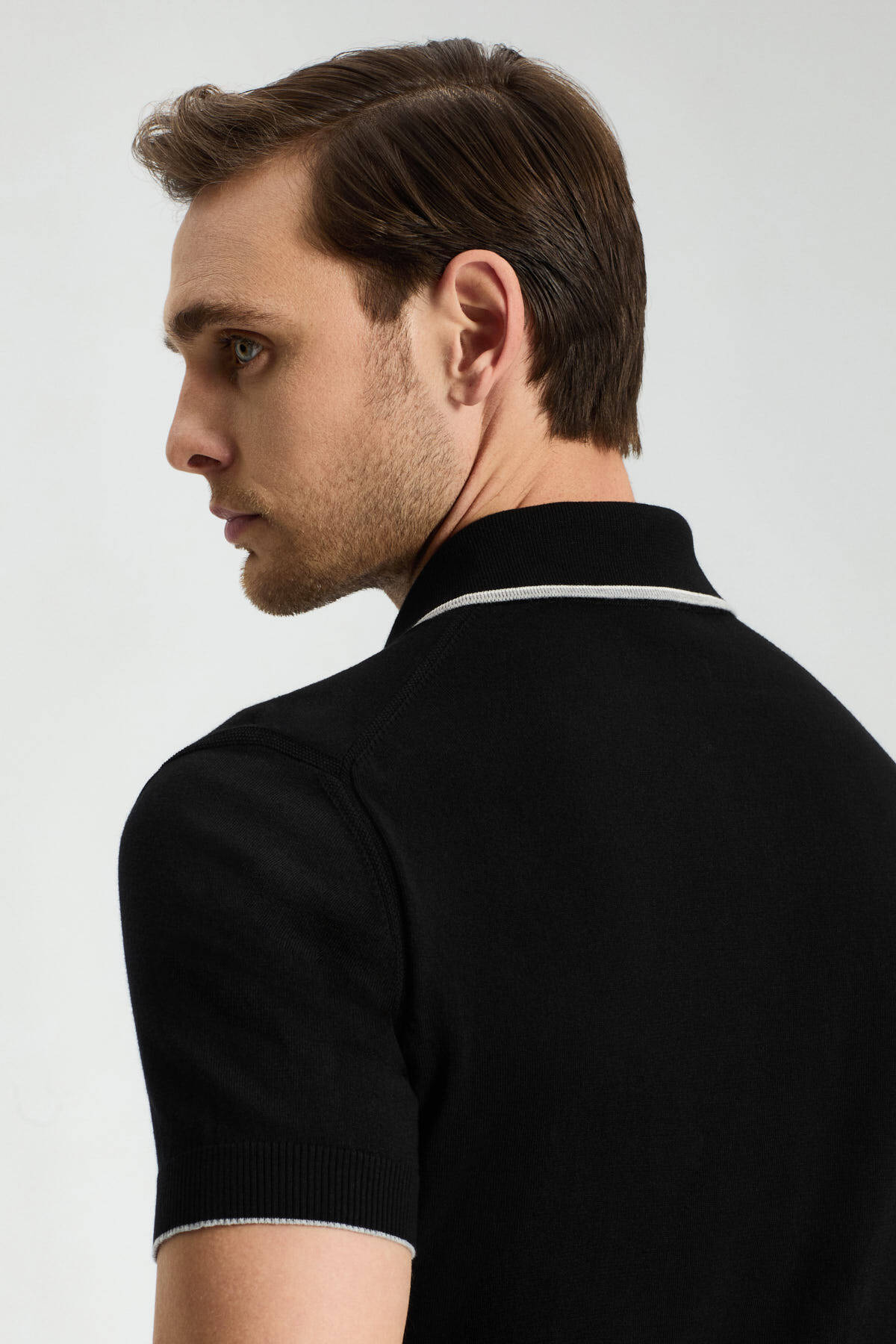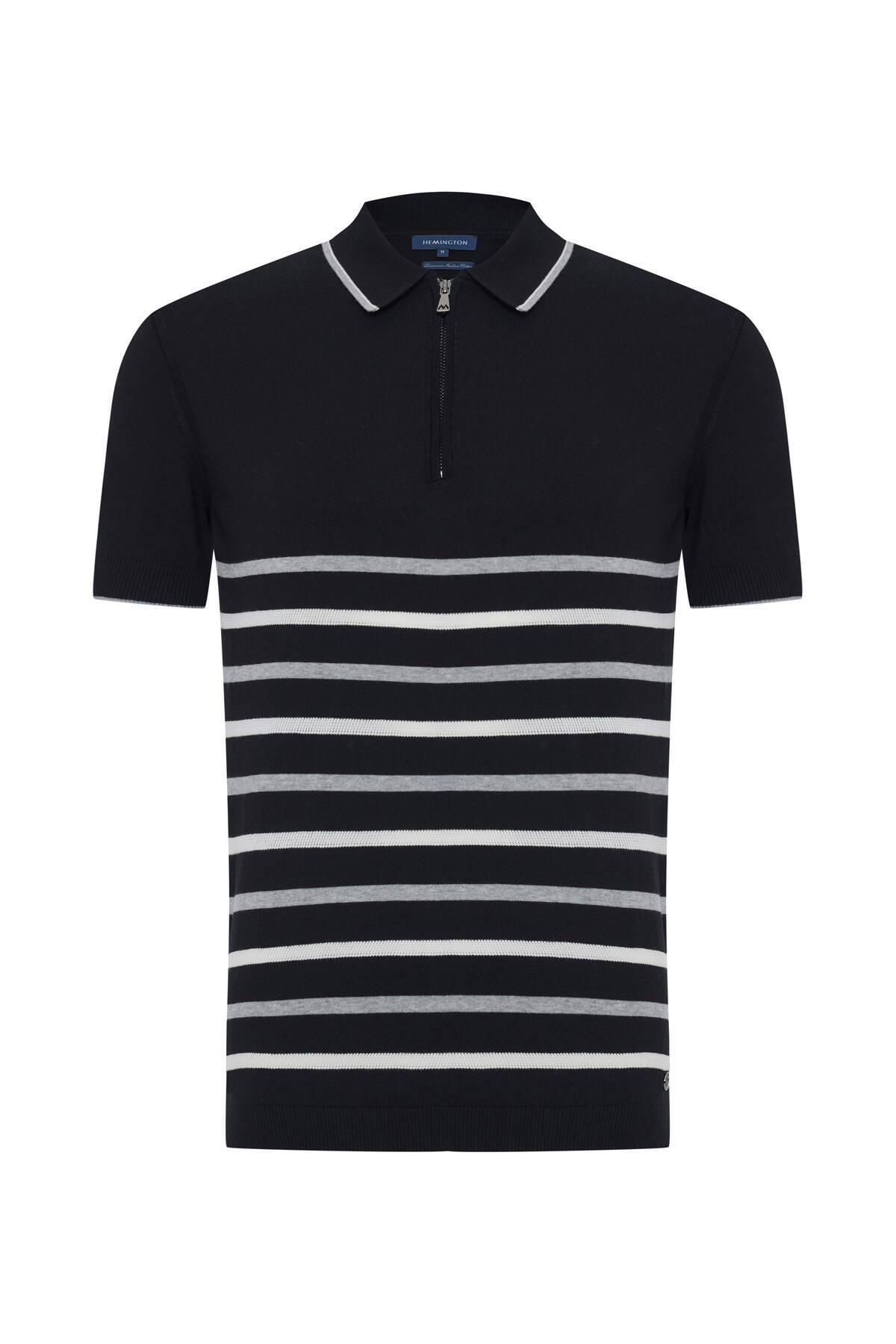 Fermuar Detaylı Çizgi Desen Siyah-Açık Gri Giza Pamuk Triko Polo Fermuar Detaylı Çizgi Desen Siyah-Açık Gri Giza Pamuk Triko Polo 252028|688 3XL