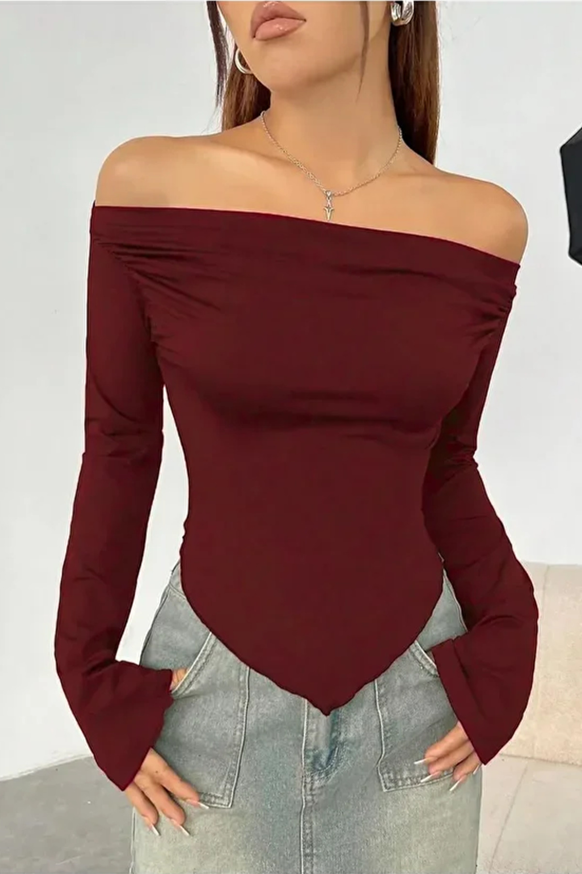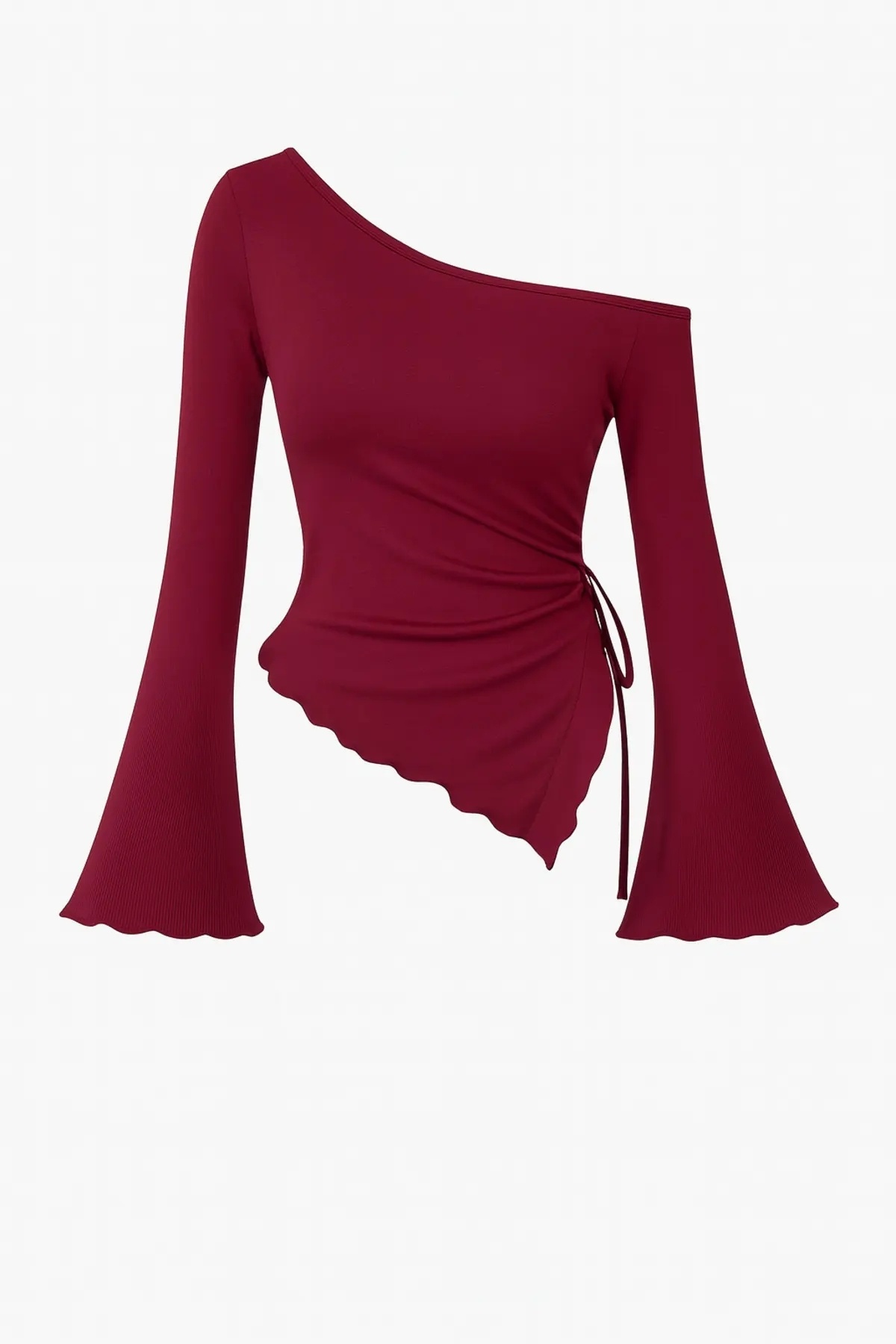 9130 BORDO ASİMETRİK YAKA YANI BÜZGÜLÜ ESNEK BLUZ 9130 BORDO ASİMETRİK YAKA YANI BÜZGÜLÜ ESNEK BLUZ WFT9130B L