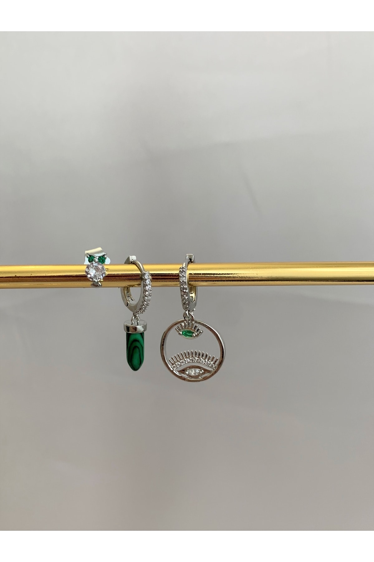 Zirkon Taşlı İnci ve Zincir Detaylı Gümüş Gri Siler Renk 6'lı Halka Küpe Seti Zirkon Taşlı İnci ve Zincir Detaylı Gümüş Gri Siler Renk 6'lı Halka Küpe Seti LLYM1804 تک سایز