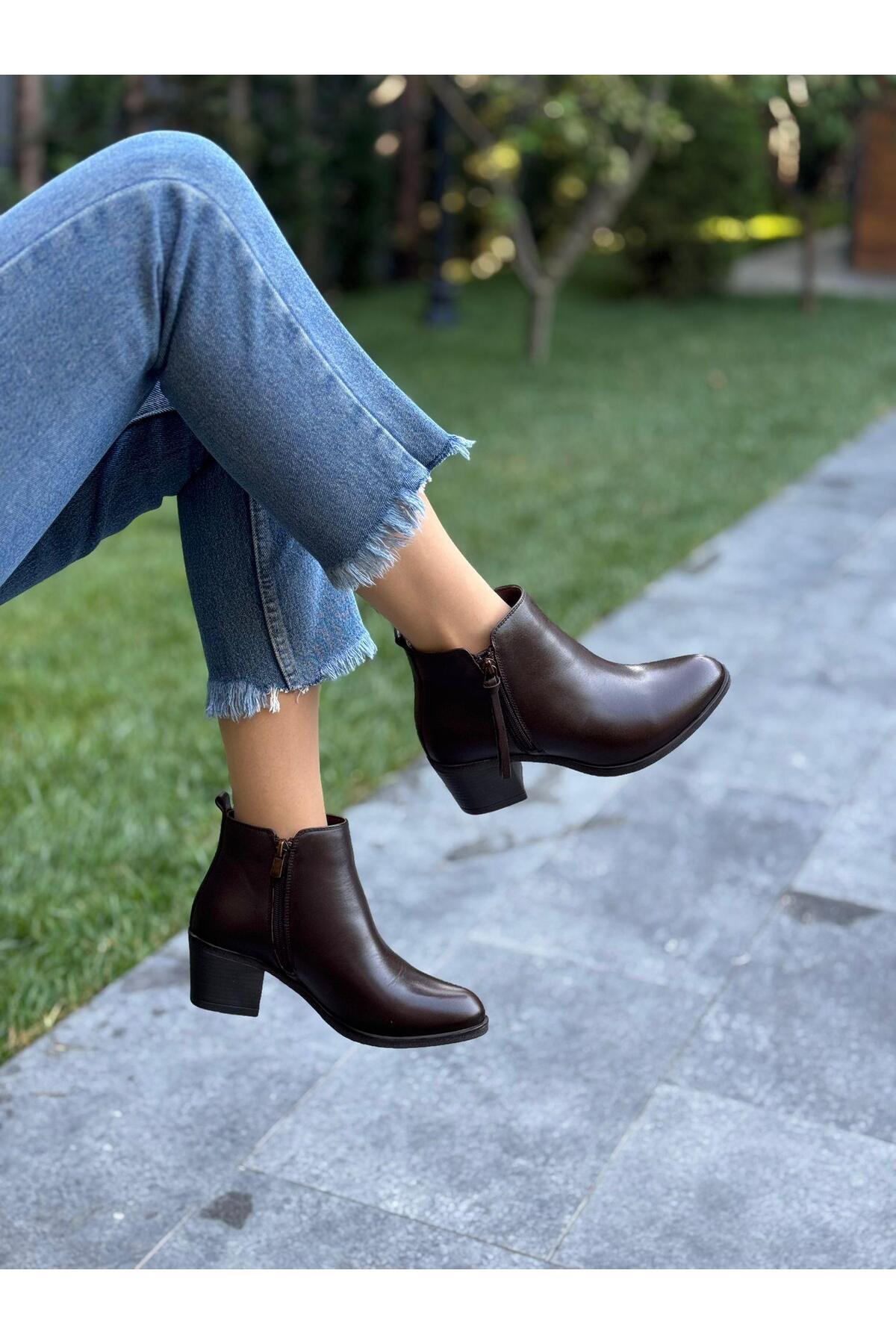 Kahve Deri Topuklu Kadın Günlük Bot Kahve Deri Topuklu Kadın Günlük Bot 256004-02 40