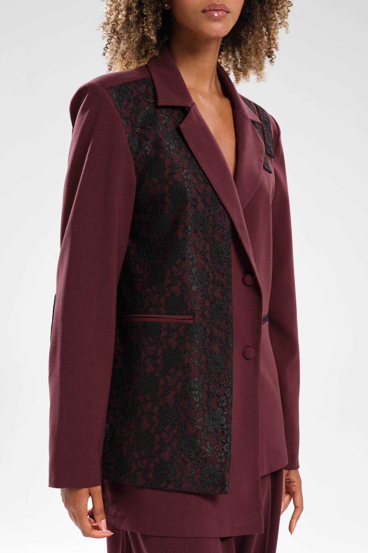 Kadın Dantel Detaylı Kruvaze Tasarım Blazer Ceket Kadın Dantel Detaylı Kruvaze Tasarım Blazer Ceket TW3-1662 L