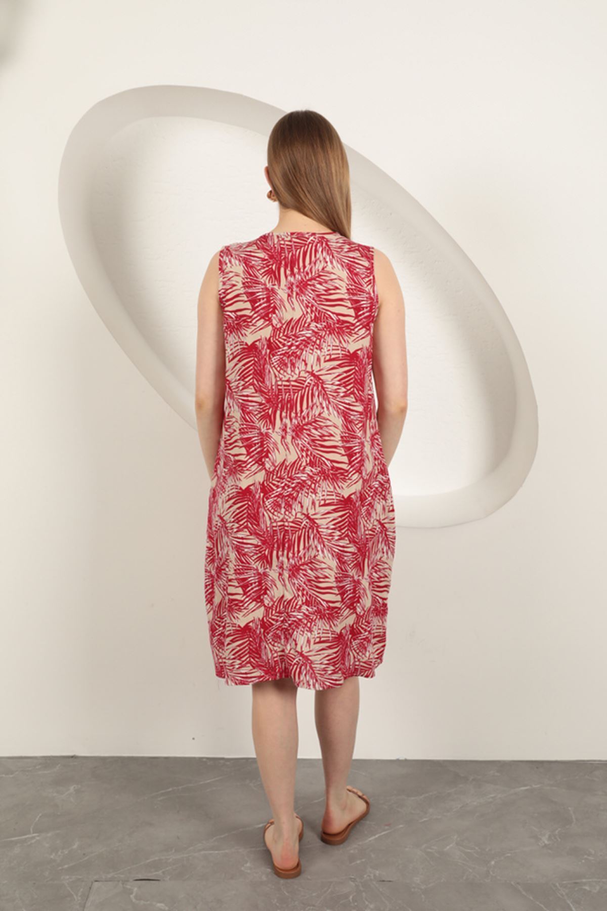 Viskon Kumaş Palmiye Desen Elbise-Kırmızı Viskon Kumaş Palmiye Desen Elbise-Kırmızı 82803 M