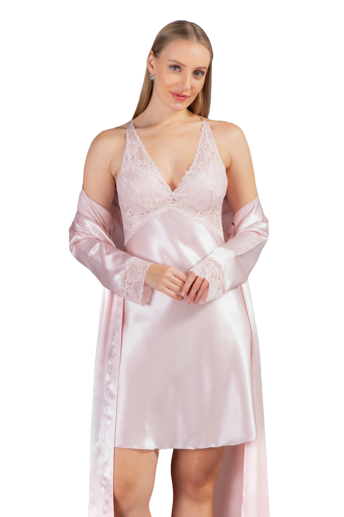 Kadın Ikili Gecelik Sabahlık Takımı Dantelli Sırt Detaylı Uzun Saten Çeyizlik Kadın Ikili Gecelik Sabahlık Takımı Dantelli Sırt Detaylı Uzun Saten Çeyizlik M435 XL