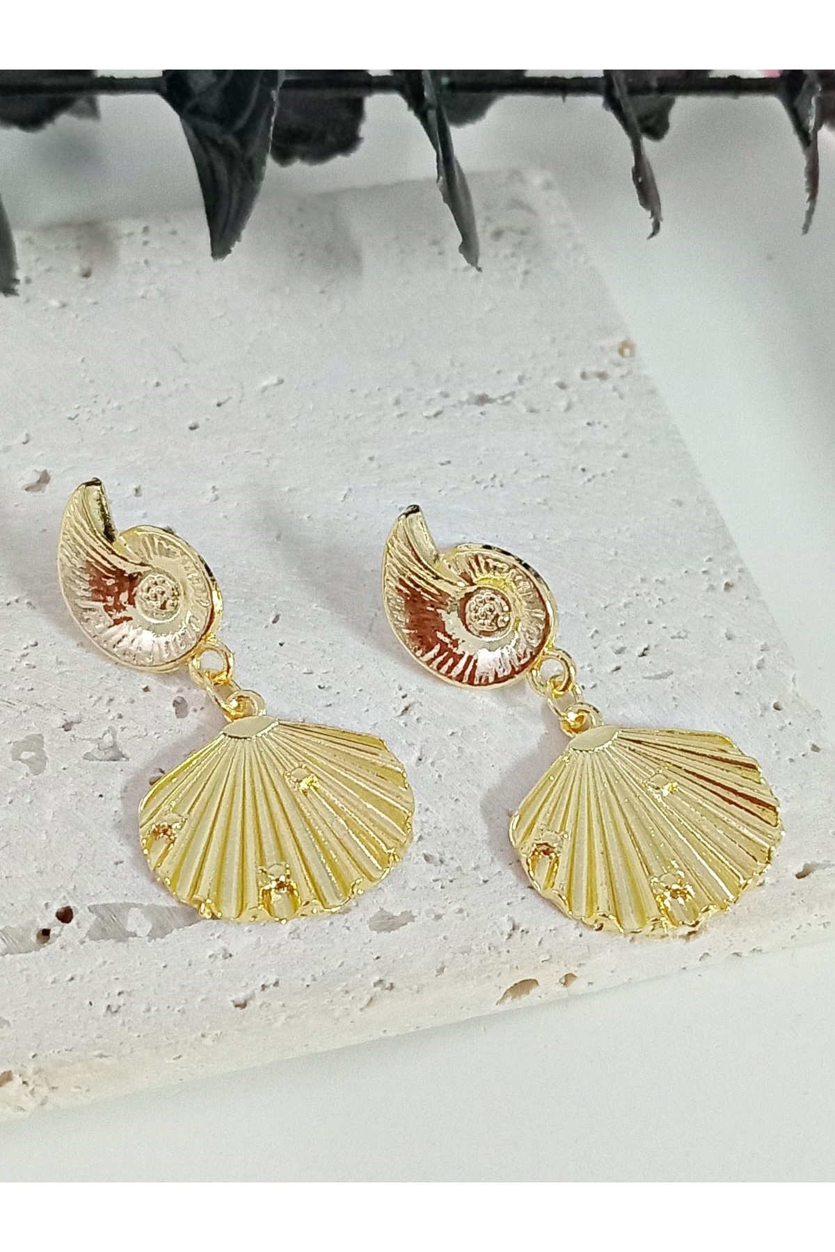 Gold Deniz Kabuğu Hafif Şık Küpe Gold Deniz Kabuğu Hafif Şık Küpe BER.2374 تک سایز
