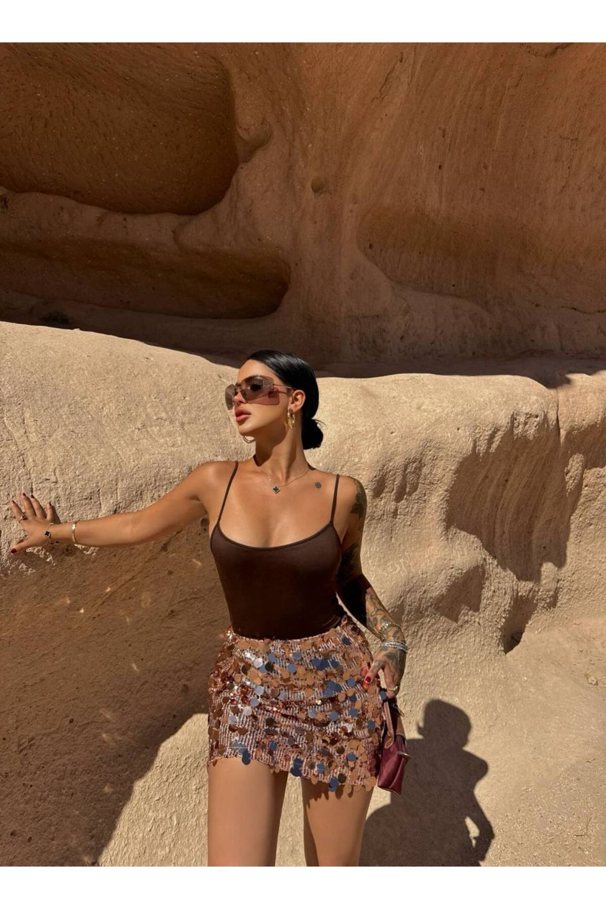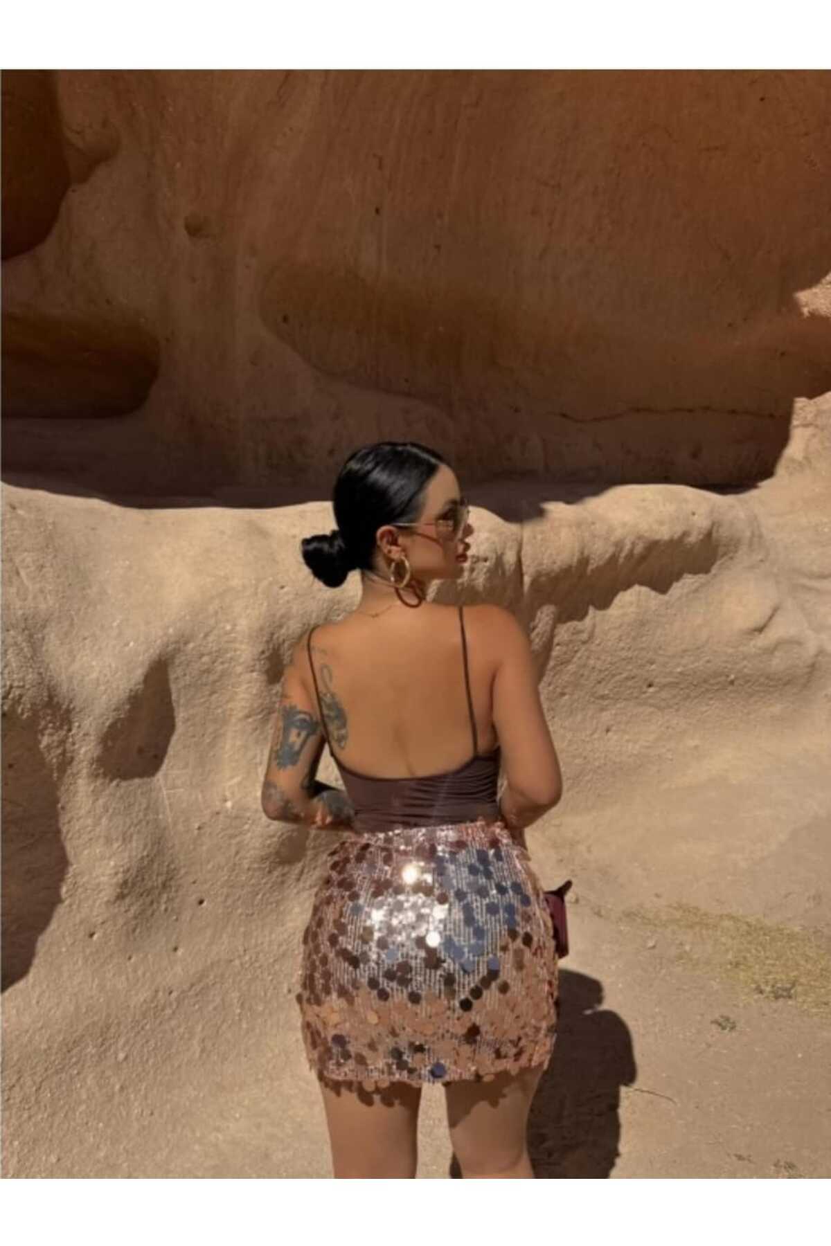 Yüksek Bel Büyük Küçük Pul Payetli Lastikli Bedenli Bel Esnek Roz Mini Etek Yüksek Bel Büyük Küçük Pul Payetli Lastikli Bedenli Bel Esnek Roz Mini Etek aytenli01065 L