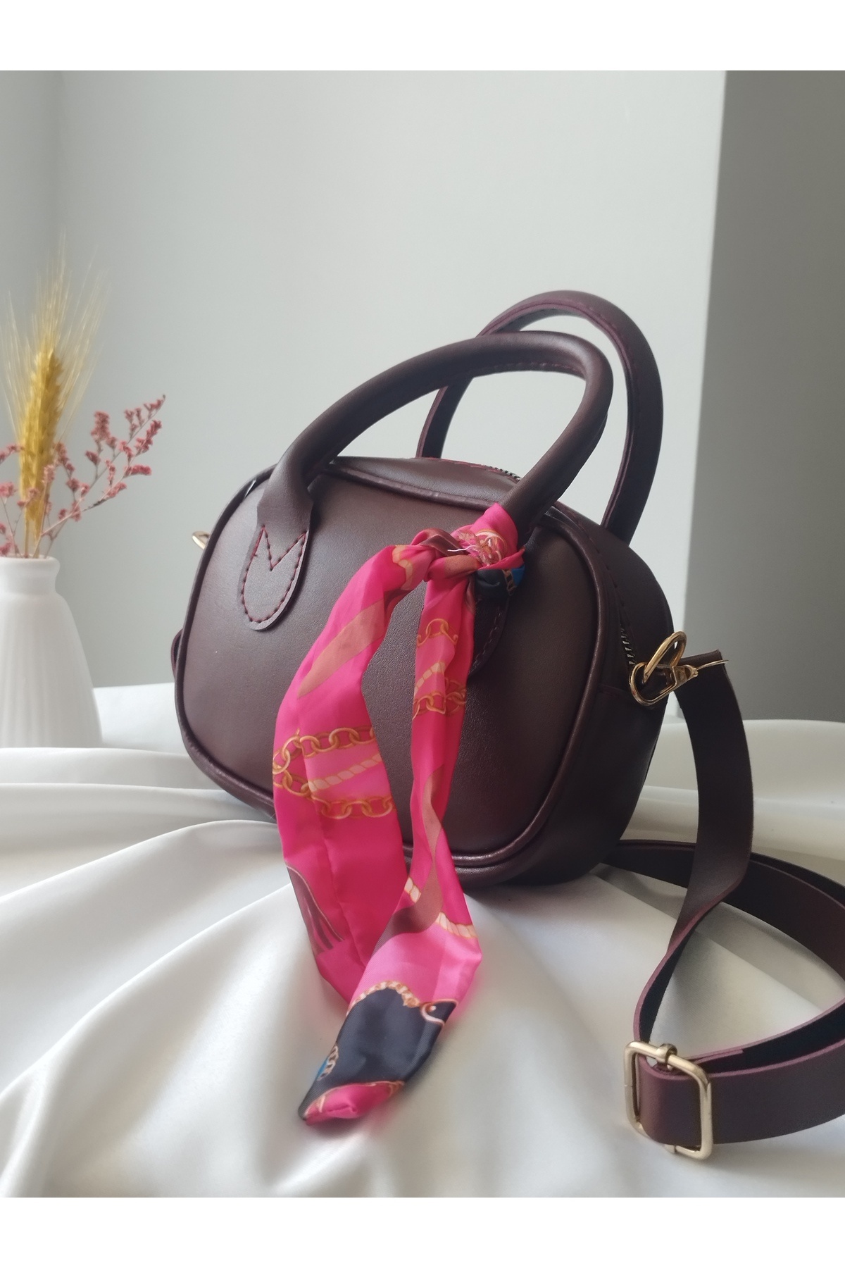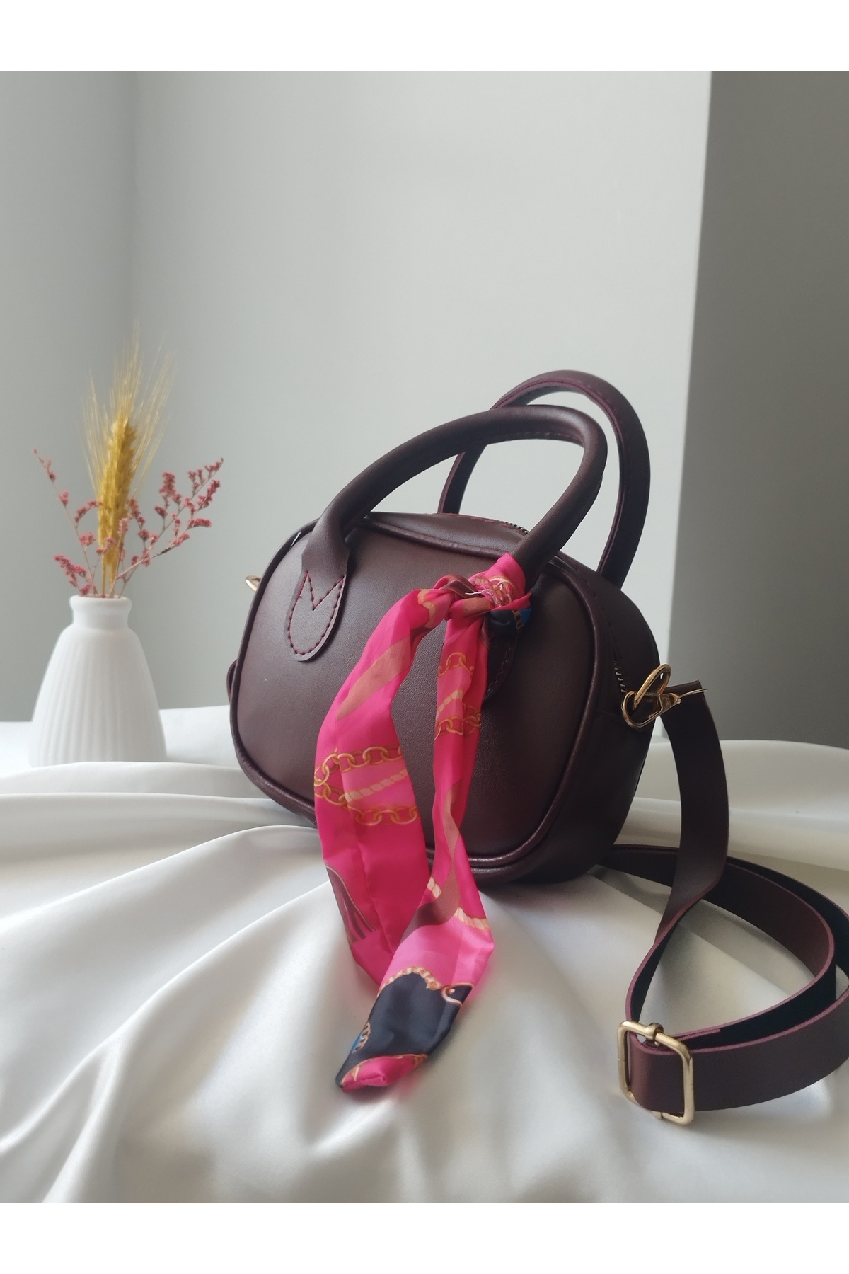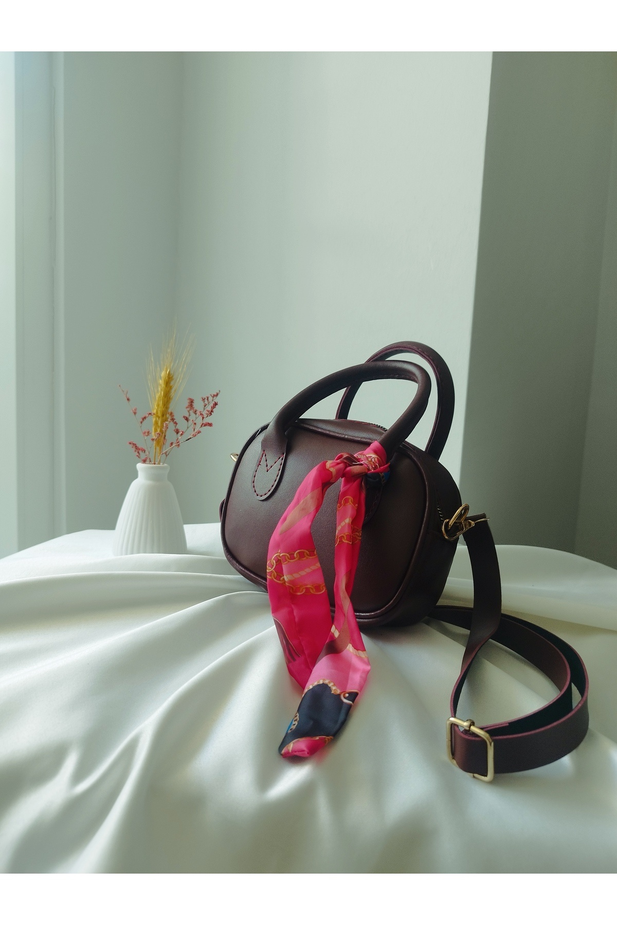 Fular Detaylı Mini Bordo Deri Kadın El ve Omuz Çanta Fular Detaylı Mini Bordo Deri Kadın El ve Omuz Çanta ÇAN0042 Standart