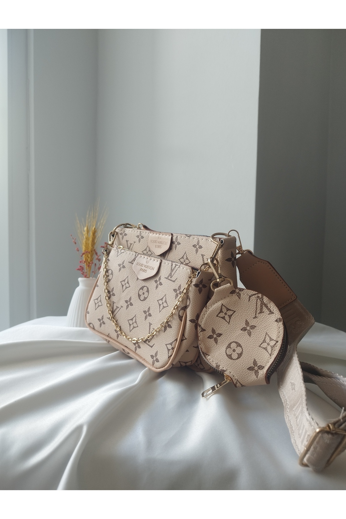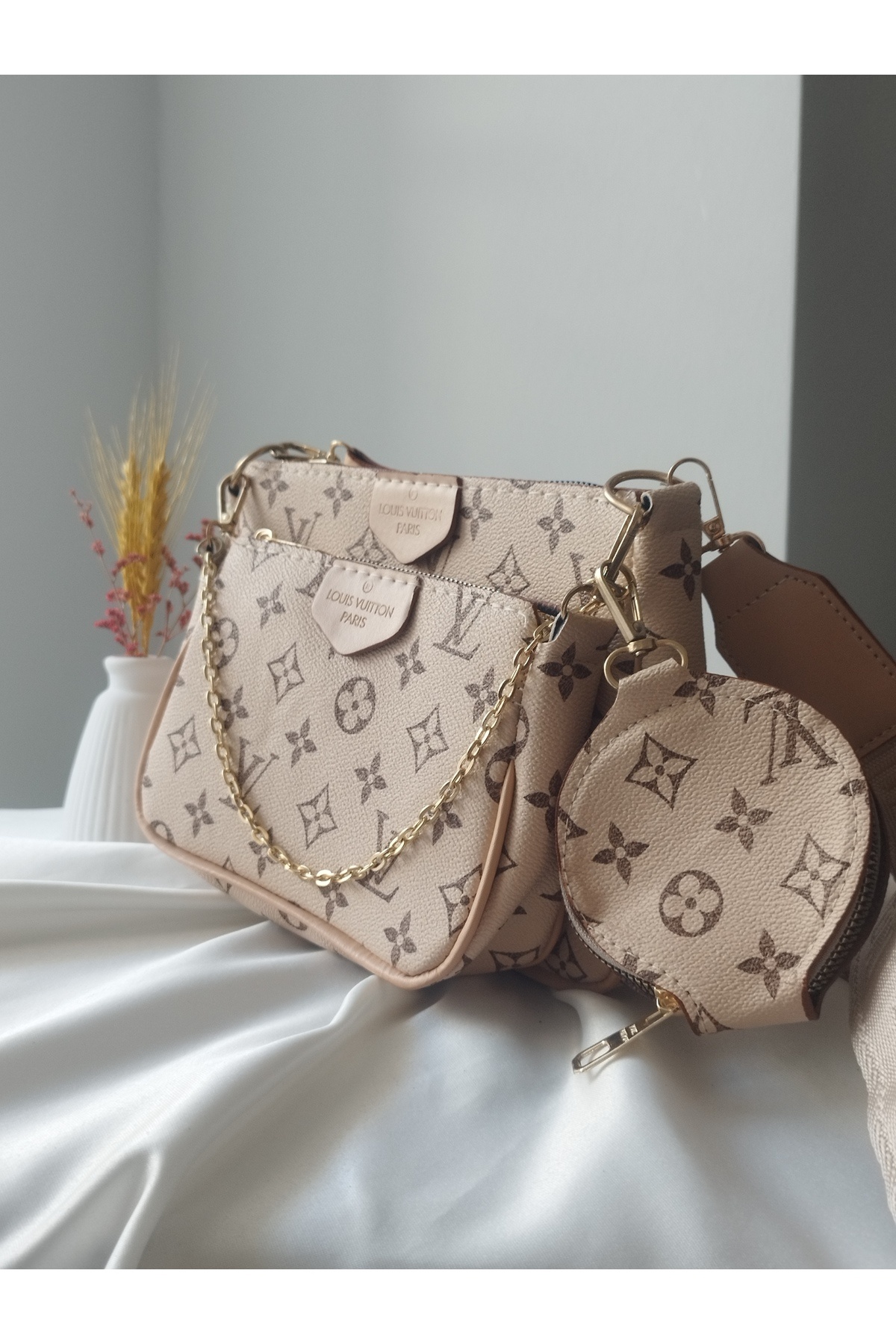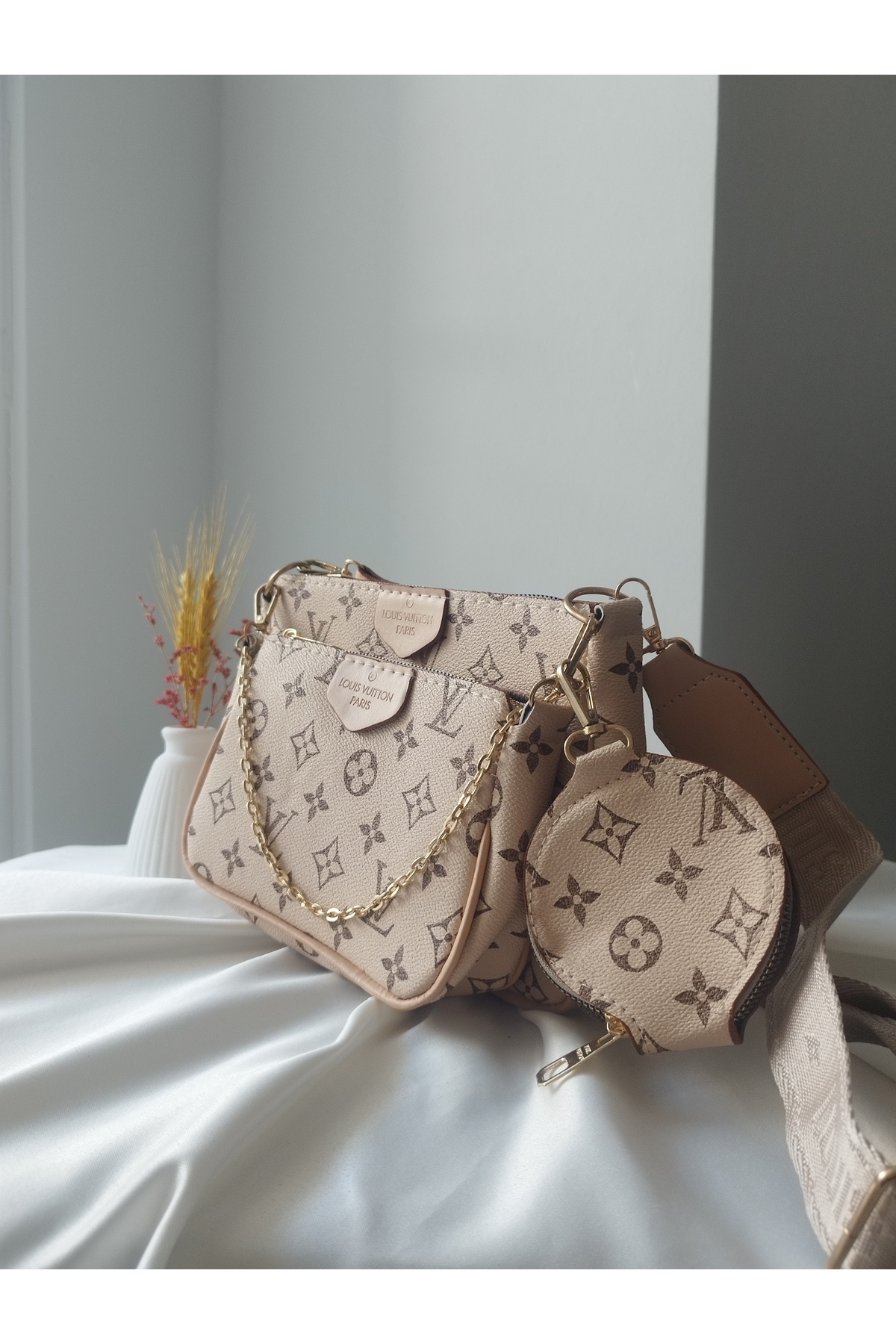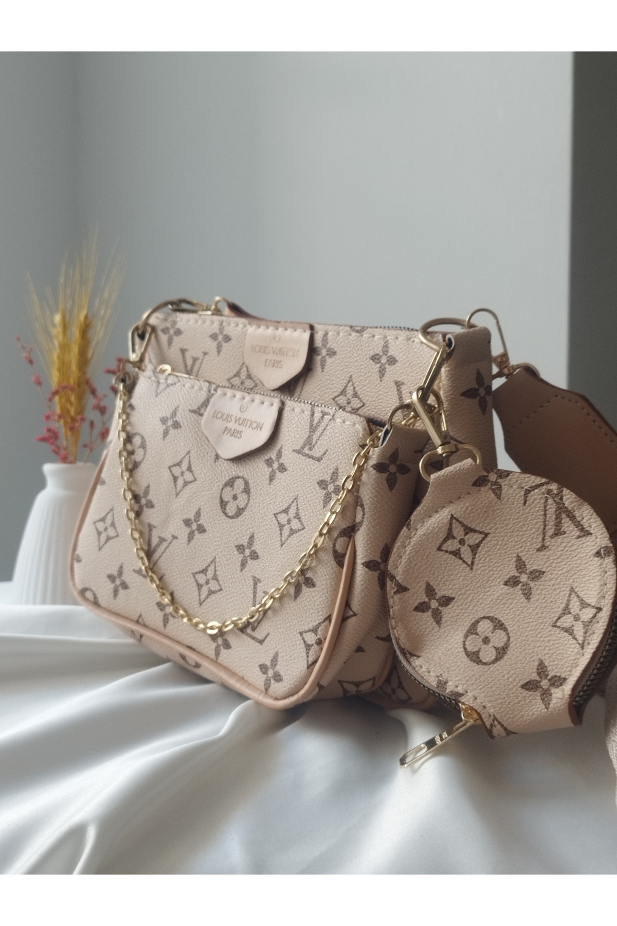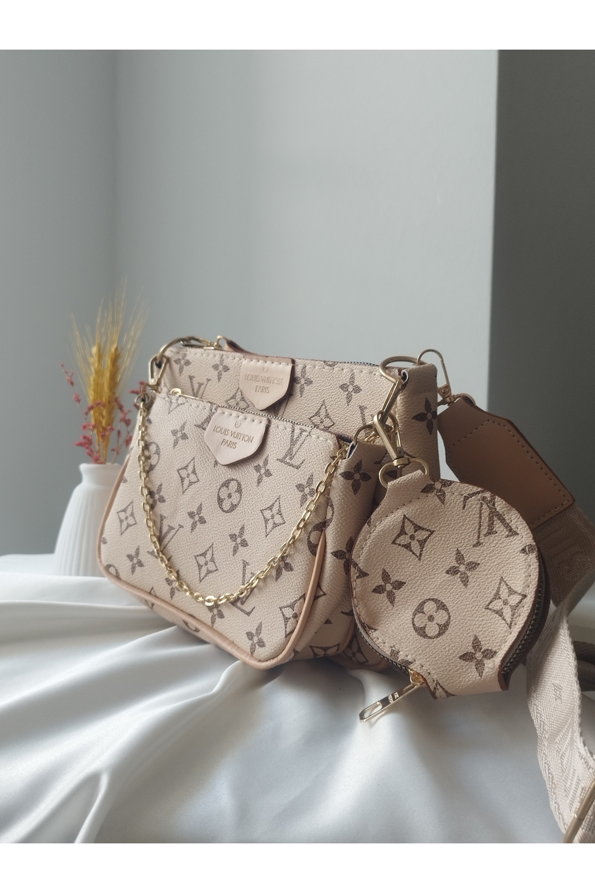 Kadın Pudra Krem Deri Mix Desen 3'lü El Omuz ve Çapraz Çanta Kadın Pudra Krem Deri Mix Desen 3'lü El Omuz ve Çapraz Çanta ÇAN0101 Standart